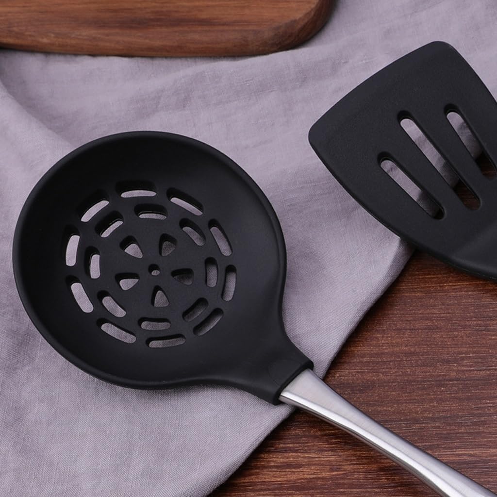 The package storage and hanging hole fitting hook are convenient for storage and use.The curved handle provides a comfortable grip and is not prone to slipping.piece is not easily broken and has a longer service life.Deepen the scoop mouth for extra capacity.Temperature resistance can resist temperature changes and cook at high temperatures.Name: Kitchenware SetMaterial: SiliconeColor: As shown in the pictureNumber of pieces: 4Specification: Kitchenware set * 11. Due to screen display differences, there may be slight color differences in the visual. Please refer to the product received.2. Manual measurement may have slight errors, please understand.High temperature resistant material, can withstand high temperature use, and has no odor when cooking