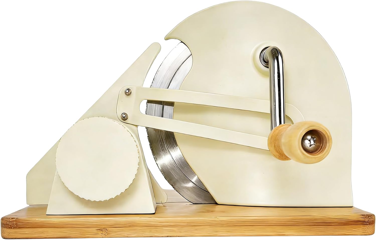Transform your homemade bread into perfectly uniform slices with this premium bread slicer machine. The adjustable thickness settings let you customize your cuts exactly how you like them, while the sharp stainless steel blade ensures clean, precise slicing every time. The sturdy wooden base features 6 large suction cups that provide exceptional stability during use, keeping the slicer firmly in place on your countertop. This thoughtfully designed kitchen tool combines functionality with convenience - its foldable, compact design makes storage a breeze when not in use. The non-slip base adds an extra layer of safety and control while slicing. Whether you're preparing sandwiches, toast, or serving fresh-baked bread, this slicer helps you achieve consistent, professional-looking results. The durable construction and quality materials ensure this bread slicer will be a lasting addition to your kitchen essentials. Perfect for home bakers who appreciate precision and convenience in their kitchen tools.