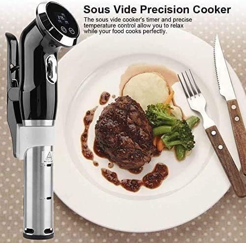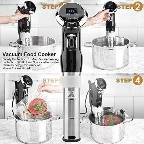 Using steps: Step 1: Seal food in a vacuum bag, and place them in a water bath. Step 2: Press the ON button for 3 seconds and then it will bleep and the display will turn on. Step 3: Set timer to delay the start of cooking time. Or press set button again to set actual cook time, called "work time" on this unit (which only starts counting down once water has reached the correct temperature) Step 4: Set the temperatures / timer by using the black scroll wheel on the front. Step 5: When the food reaches the target temperature and time, take it out. Specification: Condition: 100% Brand new Material: Stainless Steel Color: As shows in pictures Size: Approx.45*21*13cm / 17.72*8.27*5.12in Weight: Approx.1.45kg Voltage: 110-240V Power: 1500W Package List: 1* Sous Vide Precision Cooker