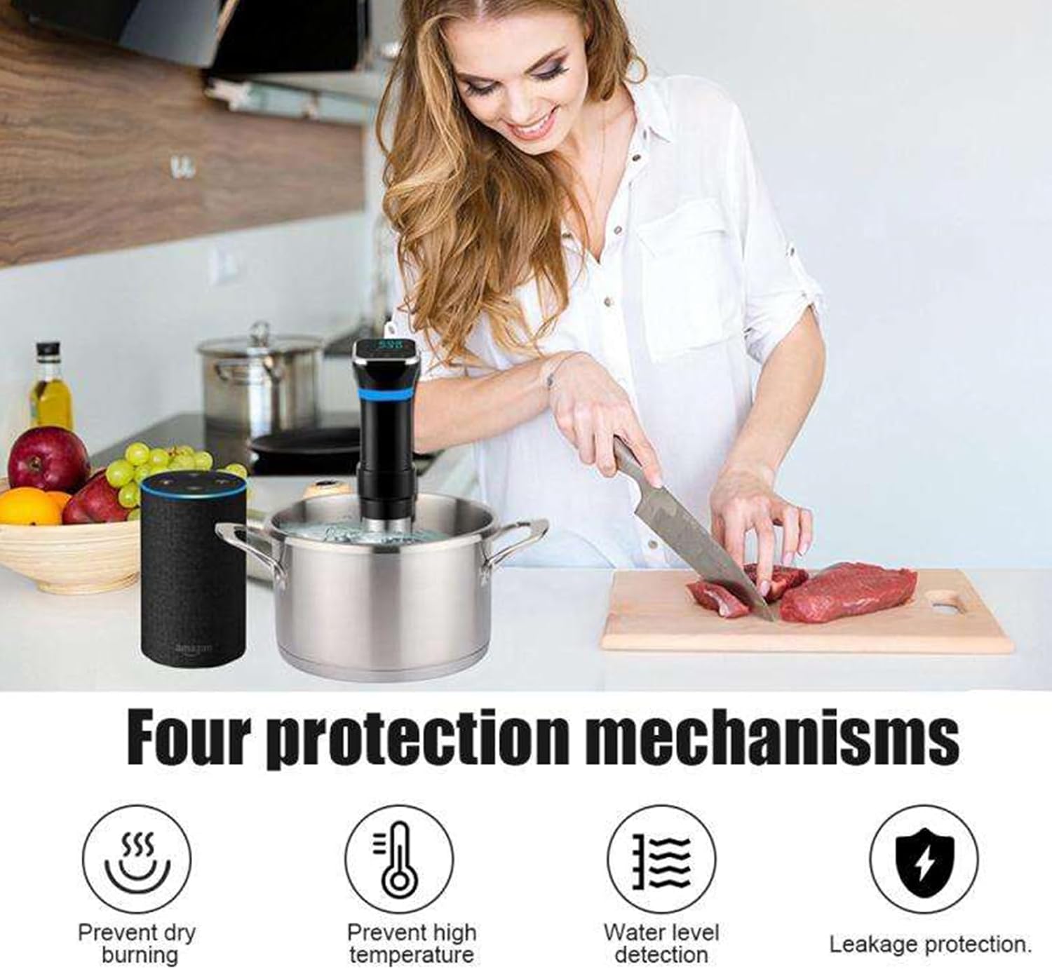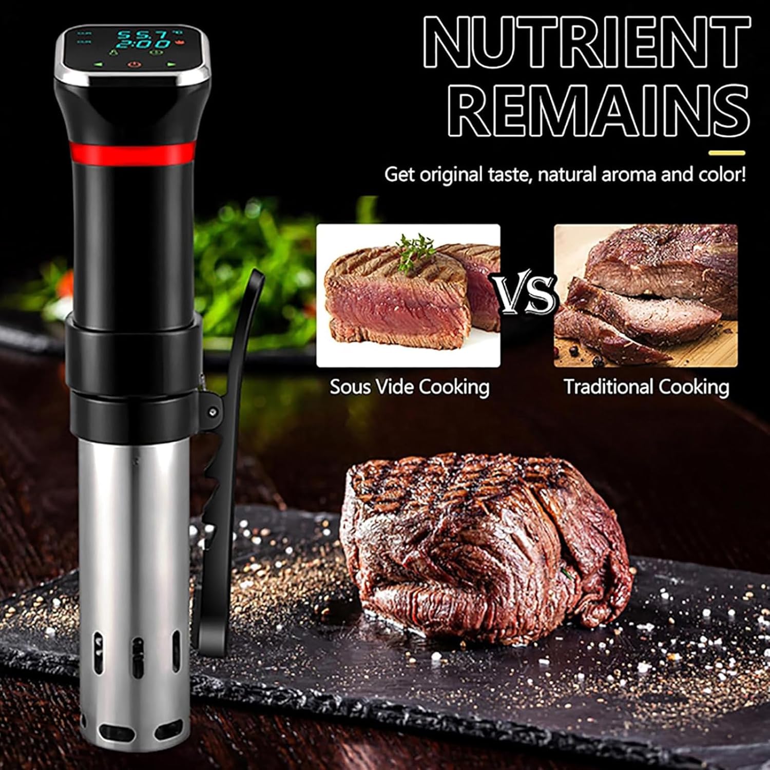 The ability to seal the flavors inside the food during cooking, will give the results second to no other method. Chicken, fish, vegetables, eggs, beef, lamb, pork and many other ingredients can be cooked sous vide. Specifications: Product Name: Sous Vide Slow Cooker Applicable Water Capacity: Maximum 23L Immersion Depth: MIN-MAX Power: 1100W Temperature Range: 25-95°C Timer: 00-99.59h Package Includes: Low-Temperature Slow Cooker * 1