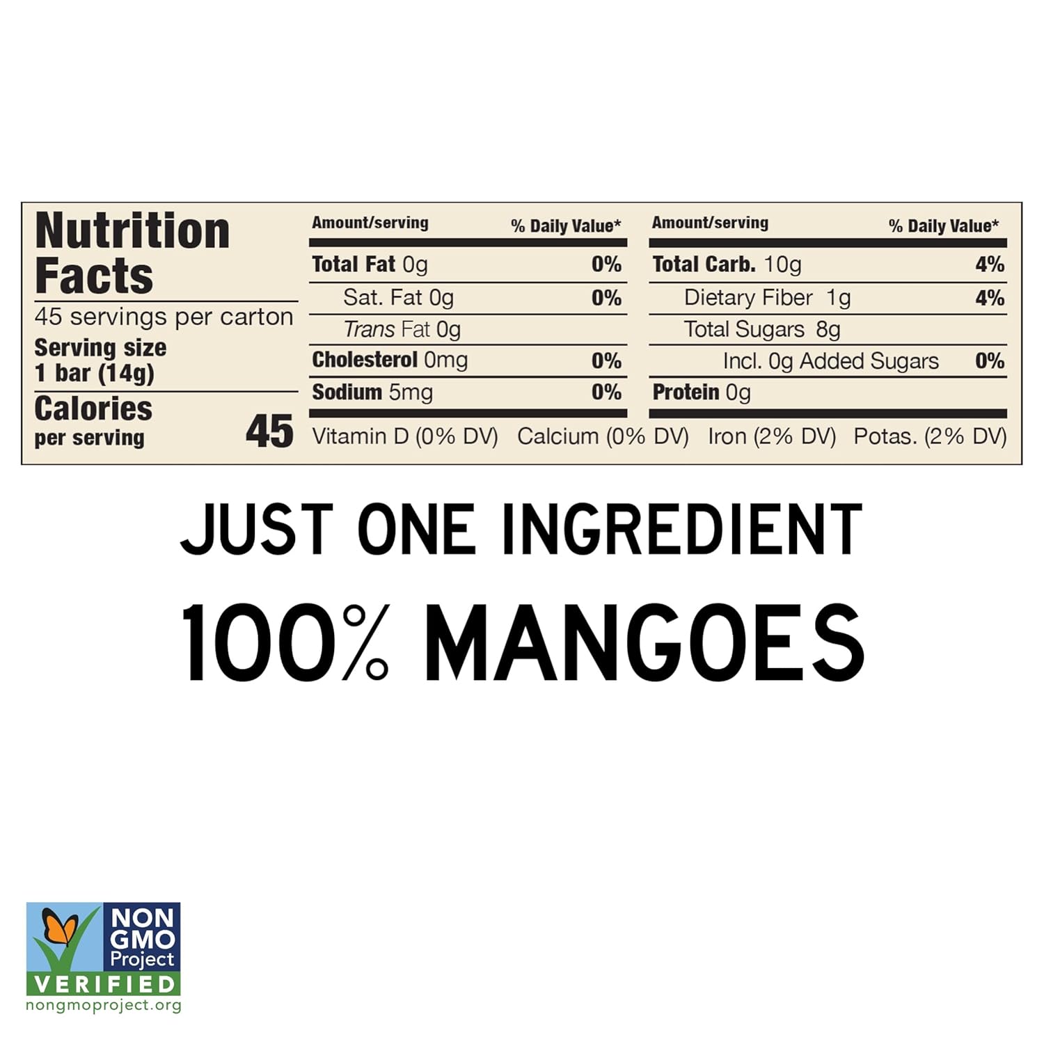 Our premium tropical fruit bars are all about taste, simplicity, and transparency. We like to say "what you see is what you eat". Our mango bar has just one ingredient (you guess it, mangoes!) and no added sugar with a naturally sweet taste. Non-GMO, Gluten Free, Vegan, Kosher.