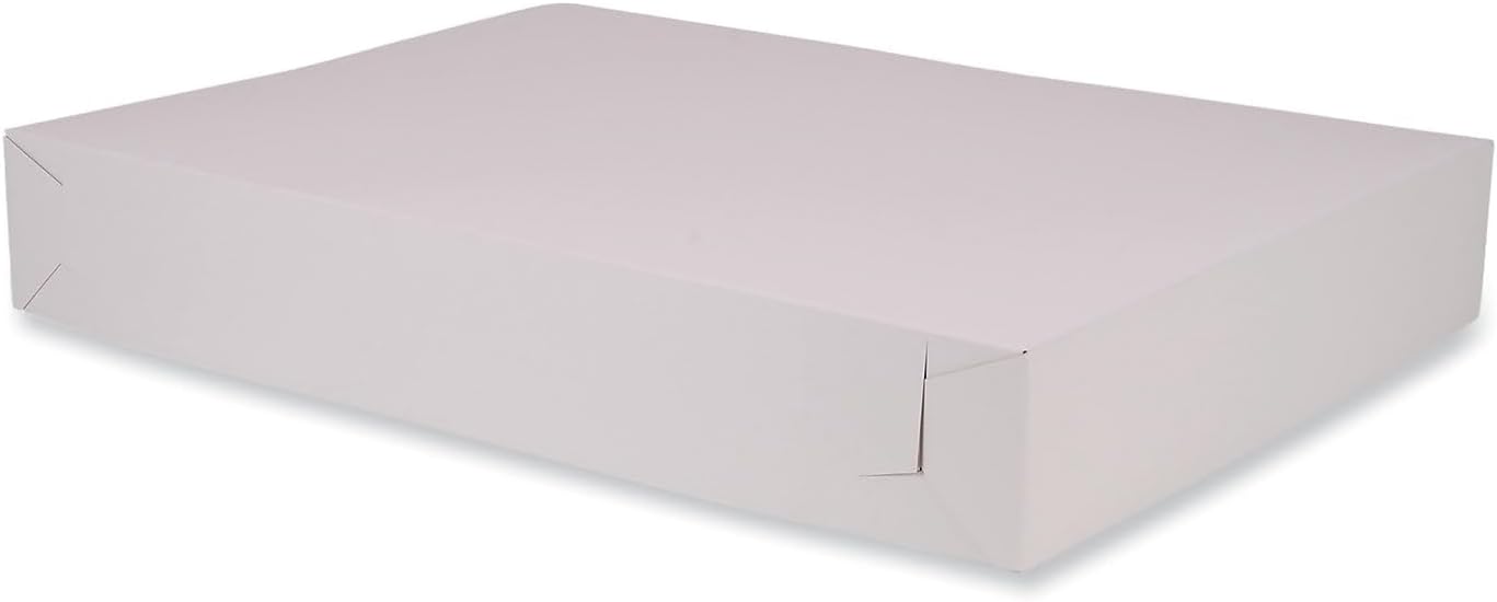 Traditional bakery boxes with locking corners ensure that your cookies and cakes arrive at their destination safe and sound. A tuck-in top creates a secure closure, protecting your baked goods. Convenient one-piece construction makes boxes easy to assemble. Sturdy paperboard bakery boxes provide an attractive presentation at an economical price.