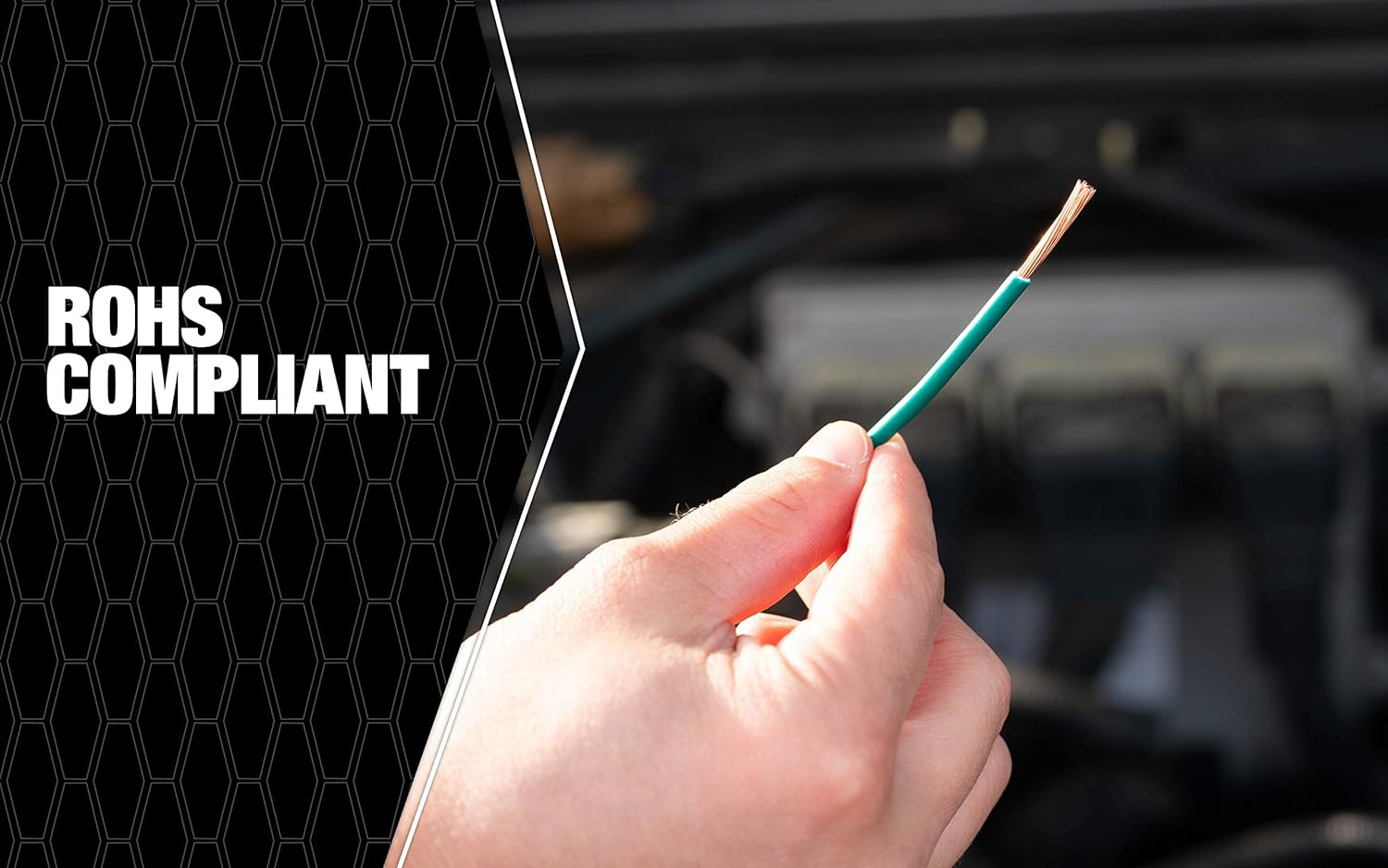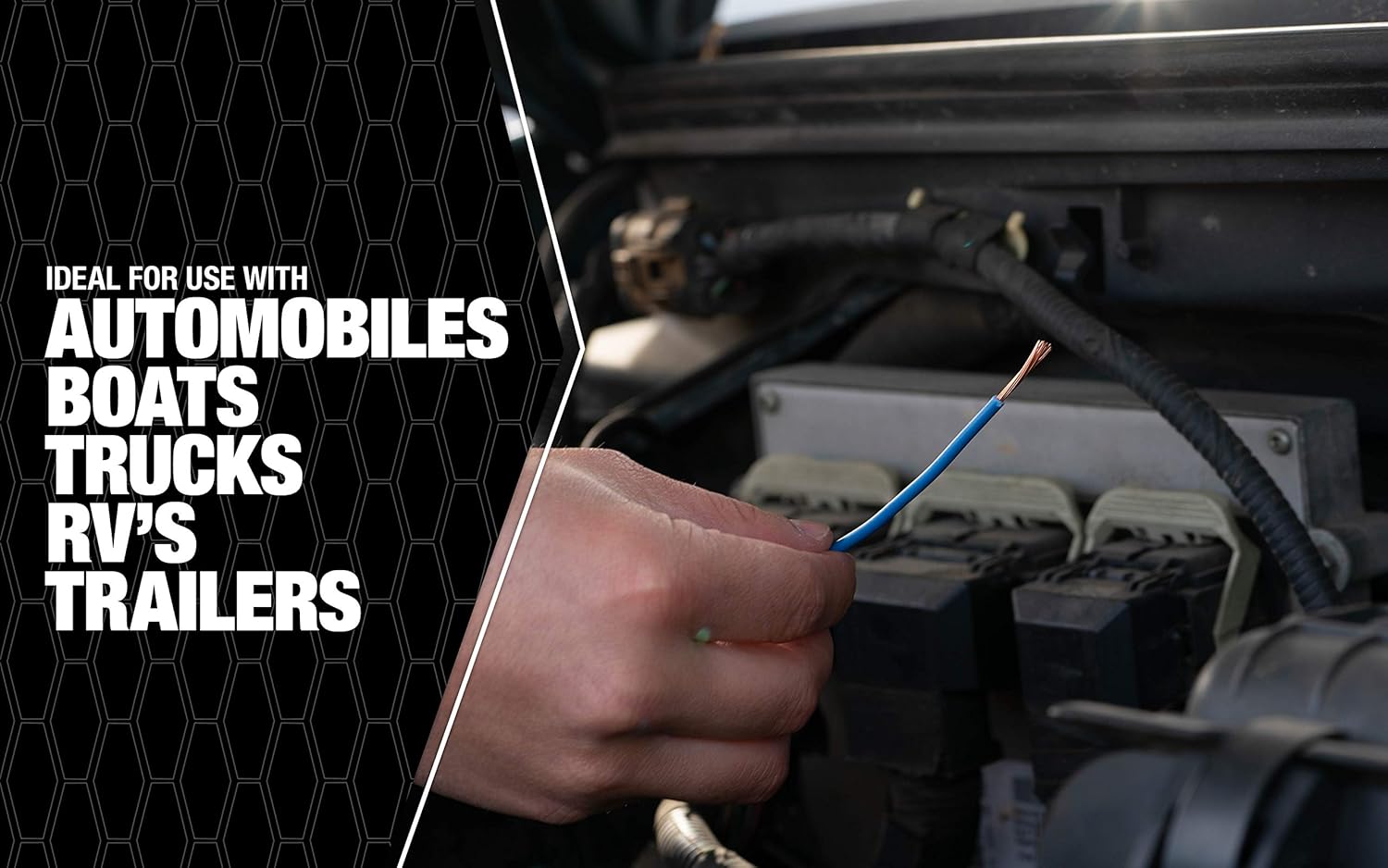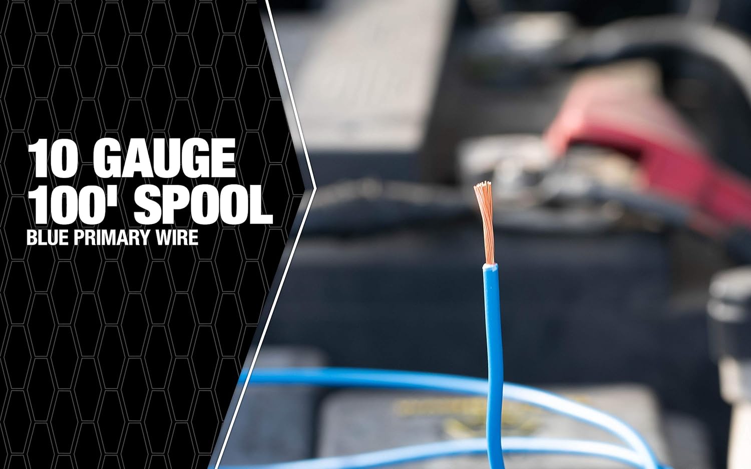 Product Description Product Description 100'; black; 14 gauge; primary wire; durable PVC outer jacket resists water; & chemicals; full gauge; stranded copper for higher current carrying capacity; use for headlight circuits; cigar lighter to switch; gas gauge; to coil; radio to fuse lock; vehicle electrical systems at nominal voltage of 60DC V; 25AC V; or less; SAE standards; rohs Compliant; spool. From the Manufacturer Coleman Cable 14-100-11 14 Gauge; 100-Feet Primary Wire; Black This wire is engineered to handle the harsh environment of an automobile engine; the durable PVC outer-jacket resists water; oil; chemicals and abrasion. You can use it on your boat; for audio wires and your car. From the Manufacturer Coleman Cable 14-100-11 14 Gauge, 100-Feet Primary Wire, Black This wire is engineered to handle the harsh environment of an automobile engine, the durable PVC outer-jacket resists water, oil, chemicals and abrasion. You can use it on your boat, for audio wires and your car.