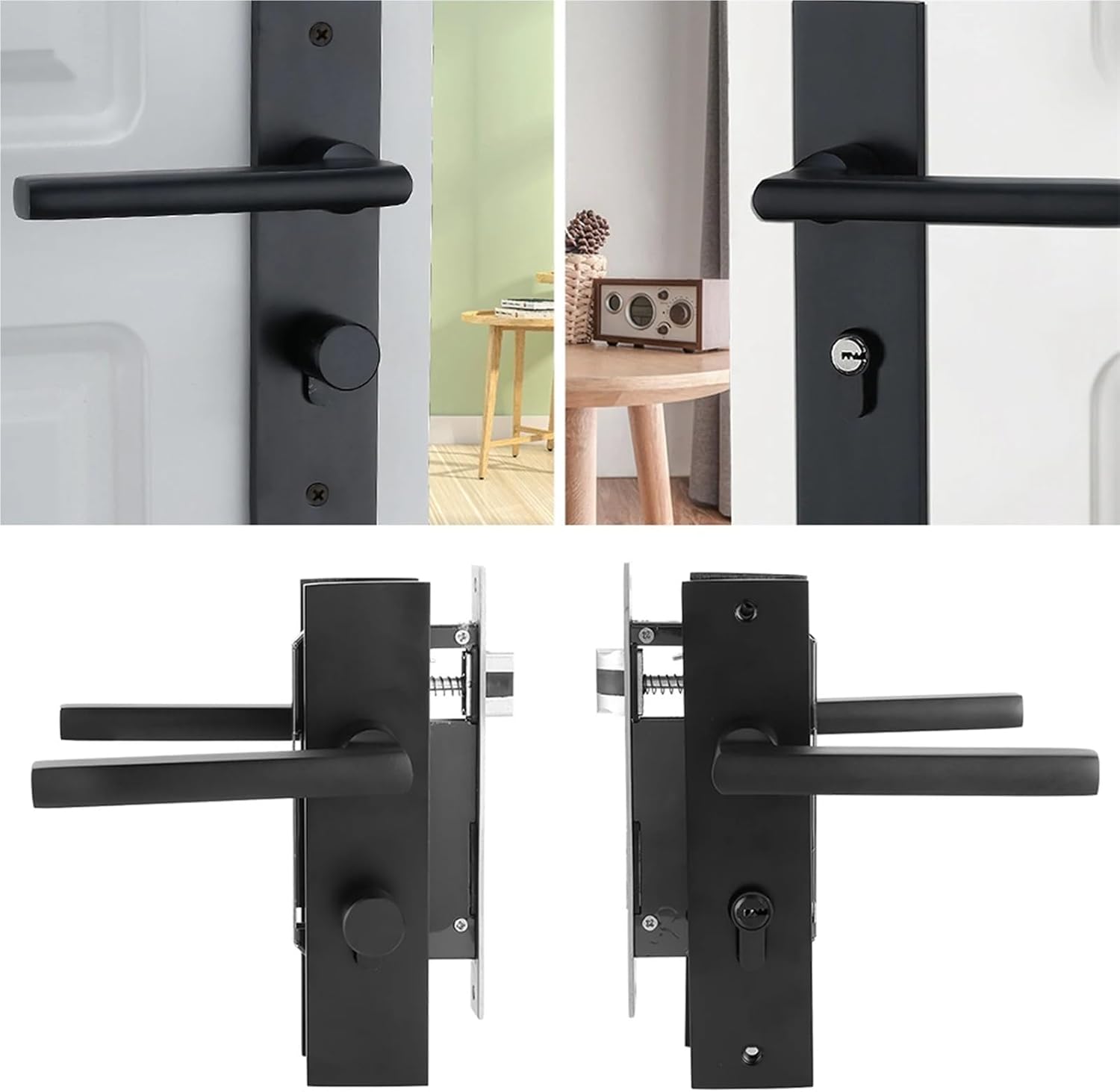 Gate HandlesSpecification:Item Type: Room Door LockMaterial: Space AluminumColor: BlackApplicable Type: Various wooden doors, bedroom doors, etc.Features: Anti-collision and mute, lock body bearing muteLock Edge Distance: Approx. 4-4.5cm / 1.6-1.8inApplicable Door Frame: Approx. 3.5-4.5cm / 1.4-1.8inProduct Size: Approx. 18.6 x 4.5 x 6.6cm / 7.3 x 1.8 x 2.6inPackage List:2 x Door Lock Panel1 x Lock Body1 x Screw2 x Lock Cylinder Screw4 x Lock Body Screw3 x Key2 x Square Bar1 x Hex Wrench1 x Lock Cylinder1 x Iron Sheet1 x Lean Box