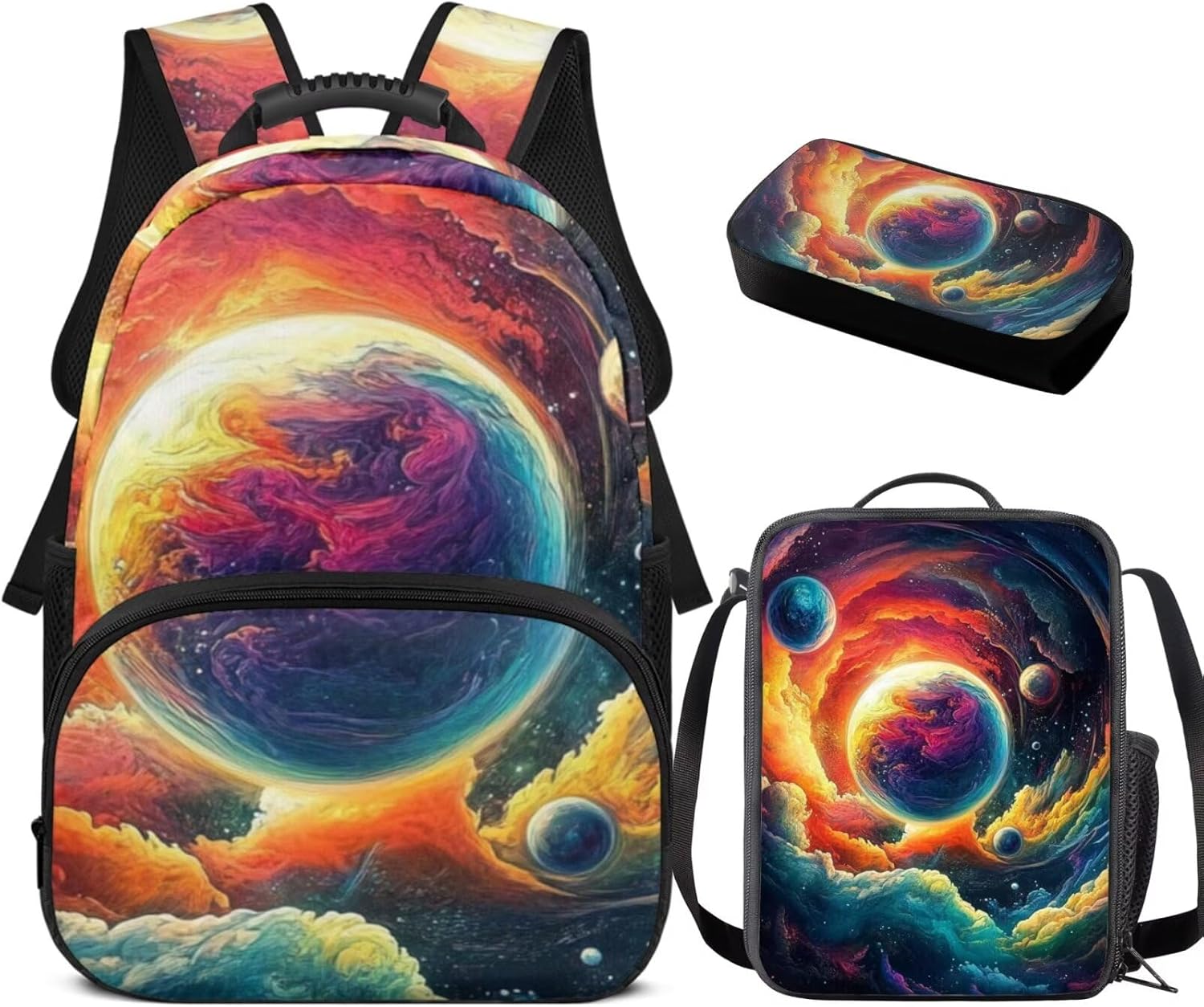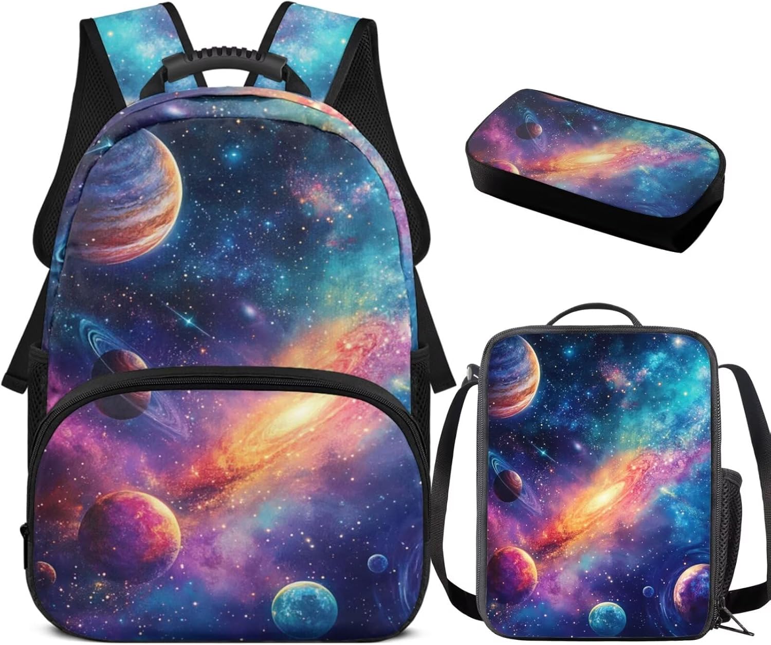 Are you looking for a school backpack set that not only meets all your child's organizational needs but also adds a touch of style and convenience to their daily routine? Look no further! Our comprehensive School Backpack Set is designed with your child's comfort, functionality, and personal expression in mind. This set includes a fully printed 17-inch backpack, a handy lunch bag, and a practical pen bag. From carrying books, stationery organized to keeping food fresh, it covers all bases. All crafted to make school days easier and more enjoyable. With a range of colors and designs, our backpack set not only looks great but also stands out in the crowd. It allows your child to express their personality while having a practical backpack that meets their school needs. Perfect for back-to-school or as a birthday present, this set is sure to delight. It's a thoughtful and useful present that will be cherished and used daily. Tips: The size may exist 1-2cm measurement error due to the size measured by hand.
