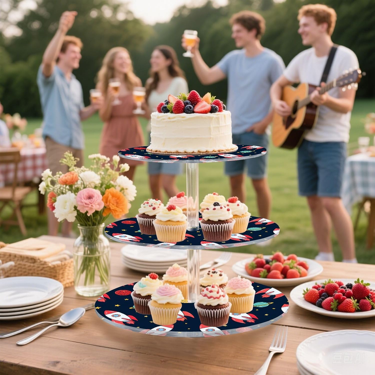 3 tiers round cupcake stand,acrylic cake tower stand holder macaron display rack cookie candy buffet desserts platter with non-slip and stable base for wedding, birthday, theme party. Due to the difference between different monitors,the picture may not reflect the actual color of the item,Please allow the slight color difference! We always doing our best to provide the best service and reliable products for every customer,Thank you very much! Have a good day!