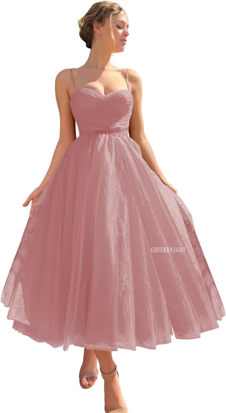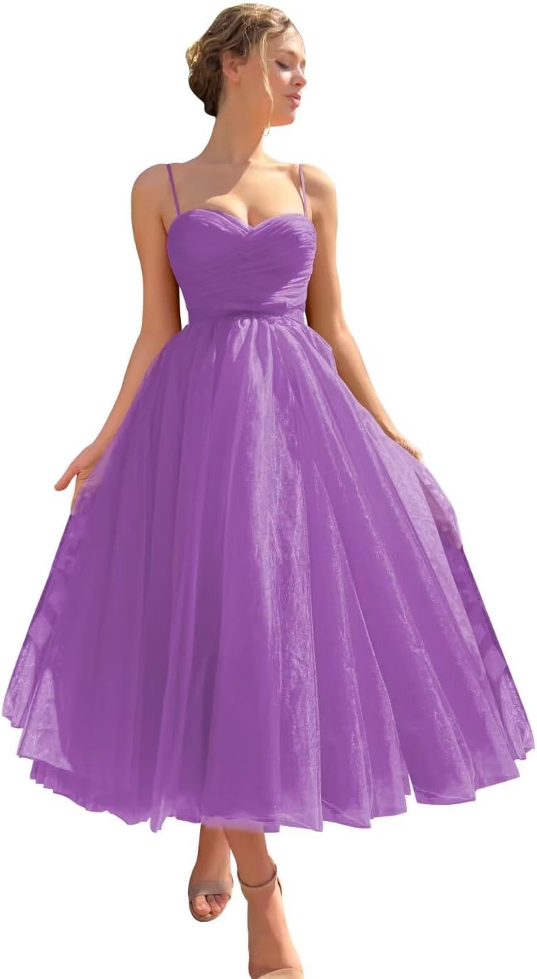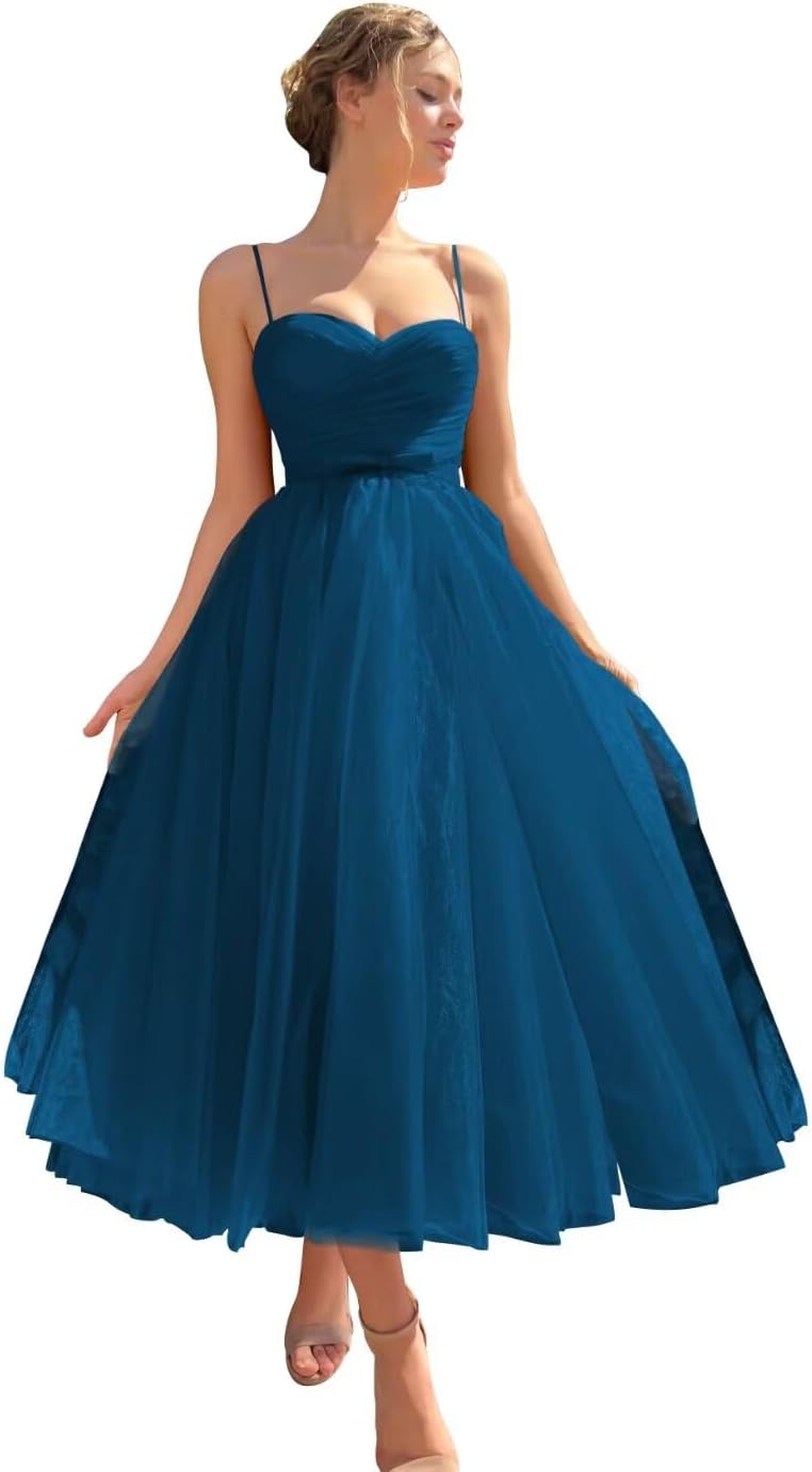 | Fabric Type | Fabric:Tea Length Tulle Prom Dresses for Teens Spaghetti Straps Prom Ball Dresses for Juniors A Line Cocktail Dresses |