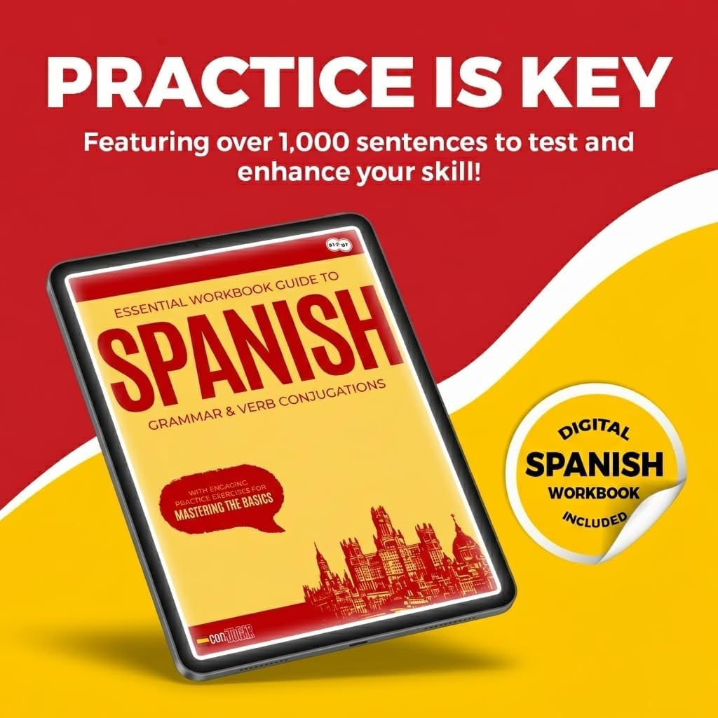 Master Spanish verb conjugations faster with the conJUGAR Spanish Verb Flashcard Deck — designed by native speakers, linguists, and language teachers in Barcelona, Spain. Whether you're a complete beginner or brushing up on irregular and reflexive verbs, this deck covers 200+ essential Spanish verbs in present, past, and future tense with color-coded conjugations for instant visual learning. Each card is printed on premium 350G glossy-laminated cardstock — durable, water-resistant, and built for daily use. No app, no subscription, no internet required. Study at home, on the go, or with classmates. Unlock the free conJUGAR Digital Workbook — 1,000+ fill-in-the-blank and practice sentences to reinforce every verb. Perfect for self-study, classroom use, or Spanish exam prep (DELE, SIELE, A1–B2). A thoughtful gift for Spanish students, travelers heading to Spain or Latin America, homeschool families, and language lovers of all ages.
