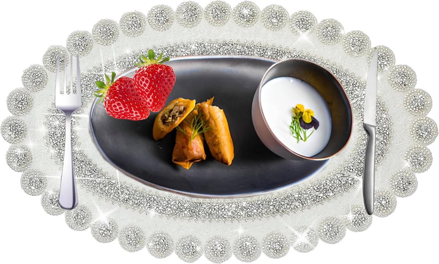 Transform your dining experience with our luxurious rhinestone placemats, designed to bring sophistication and elegance to any table setting. Crafted with precision and attention to detail, these placemats are more than just table accessories—they are a statement of style and functionality. Luxurious Quality: Made from premium materials, these placemats are designed to impress. The dazzling rhinestone design exudes elegance and adds a high-end look that will leave your guests in awe. Sparkling Rhinestone Design: Each placemat is adorned with meticulously arranged rhinestones that shimmer beautifully, creating an eye-catching sparkle. Whether for a formal dinner or casual gathering, these placemats will elevate your decor instantly. Versatile Use: Beyond the dining table, these placemats double as versatile decorative pieces. Use them as bases for flower pots, tabletop decorations, or as unique accents for your home decor. They also make thoughtful and stylish gift ideas for any occasion. Easy to Clean: Practicality meets elegance with our easy-to-clean design. Simply rinse the placemats with water and let them air dry to maintain their stunning appearance, ensuring they look as good as new after every use. Perfect for Gifting: Available in sets of 1, 2, 4, or more, each set is thoughtfully packaged in a beautiful gift box. Whether you're treating yourself or gifting a loved one, these placemats are sure to impress. Upgrade your home decor and dining experience today with these luxurious, sparkling placemats—a perfect blend of style, versatility, and practicality!