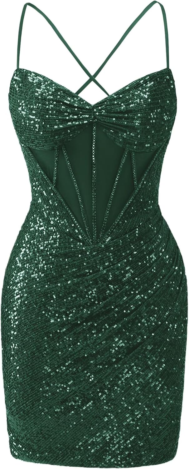 Item Description: This SparklySequin Homecoming Dresses Spaghetti Straps V-Neck Short Prom Dress for Teens Bodycon Ruched DAMA Dress is elegant and sexy, high quality sequin is very comfortable. Custom Made: Dresses can be made according to your measurements with no more charges, the measurements we need is: 1.Bust 2.Waist 3.Hips 4.Hollow(or Shoulder) to Hem 5.The height of your high heel shoes. after you place the order,please send us your measurements and order id Occasion: This Women's V-Neck Sequin Short Prom Dresses Sparkly DAMA Dresses for Quinceanera,suitable as Homecoming,DAMA Dresses for Quinceanera, Prom ,Party, Formal, Evening, Concert, Black tie, Graduation, School Dance, Birthday, Masquerade, Pageant, Reception, Club, Ceremony,Cocktail, Gala Dress, Sweet 16, Special Occasion. Waistline:Natural Decoration:Spaghetti Straps,sequin,v-neck,ruched Fabric Type:Sequin Back:Lace up back Dresses Length:Short Sleeve Length:Sleeveless