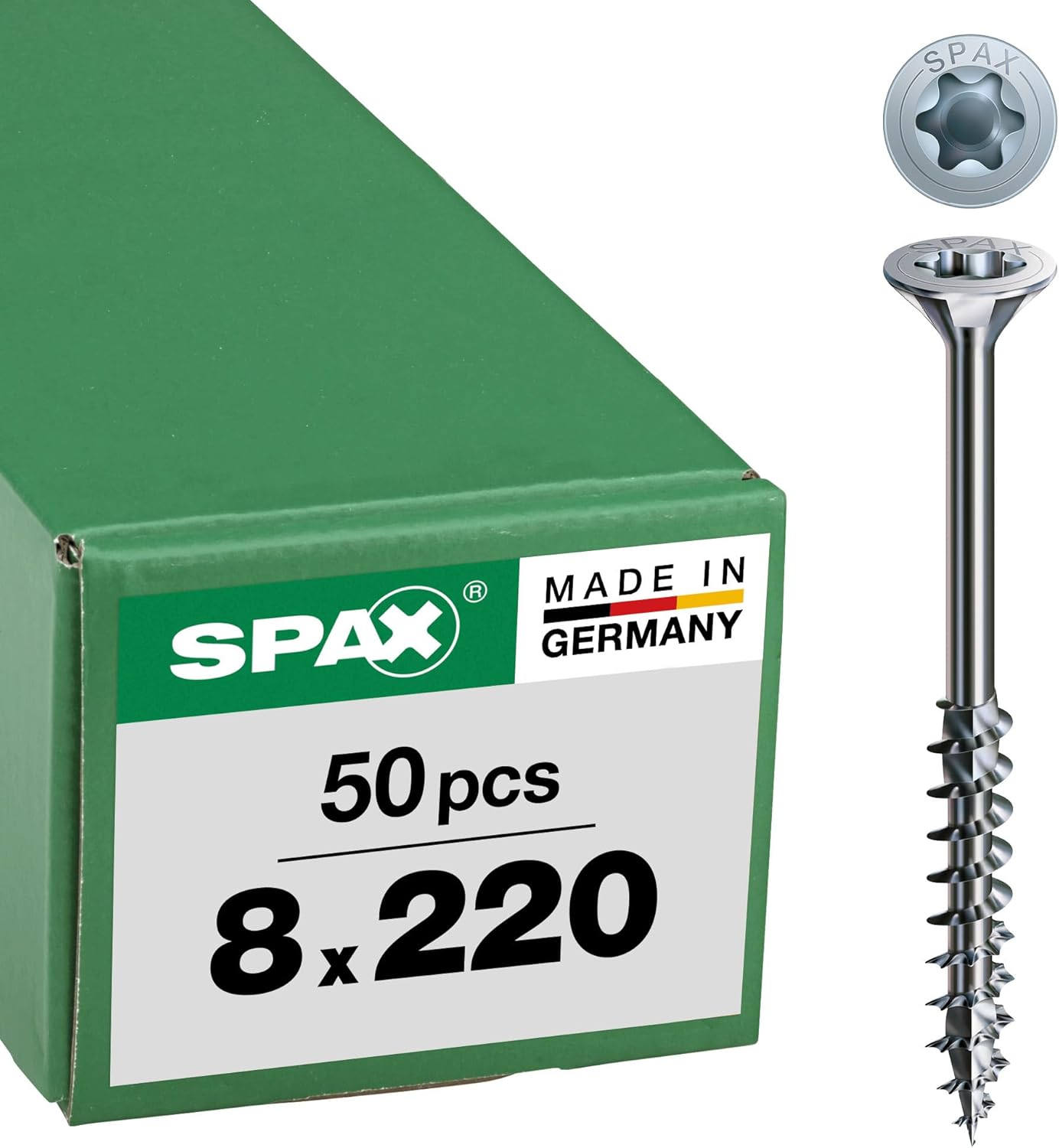 Spax – safety, quality and reliability since 1967. The brand product in the characteristic green packaging - produced in Germany and exported all over the world: clever heads in Ennepetal constantly develop ideas, expand the product range and establish the highest quality for home improvement, professional processors, planners and architects all over the world. - This product is suitable for use with: for connecting wood elements - As a multi head pronounced countersunk for flush penetration and comfortable processing, milled in the wood, brakes on metal. Optimum power transmission and clean fit even when processing via head with Spax T-Star Plus T50 bit with guide pins. Effortless work and longer battery life: no pre-drilling (depending on the wood). Easy penetration, reduction of the gap effect by 4CUT: Four edges in the screw tip. Easier cutting of the wood fibre by Spax-profile. Made in Germany. Certified for use in the technical approval for screws as a wood connecting Medium in carrying wood constructions (ETA-12/0114). Box contents: 1 Spax box, pack of 50 wood screws, T-Star plus, countersunk head, partial thread, 4CUT, galvanised, yellow passivated, thread diameter (Ød1) = 10 mm x total length (Ls) = 140 mm, partial thread length (LgT) = 80 mm, head diameter (Ødk). ): 18, 6 mm, bit not included.