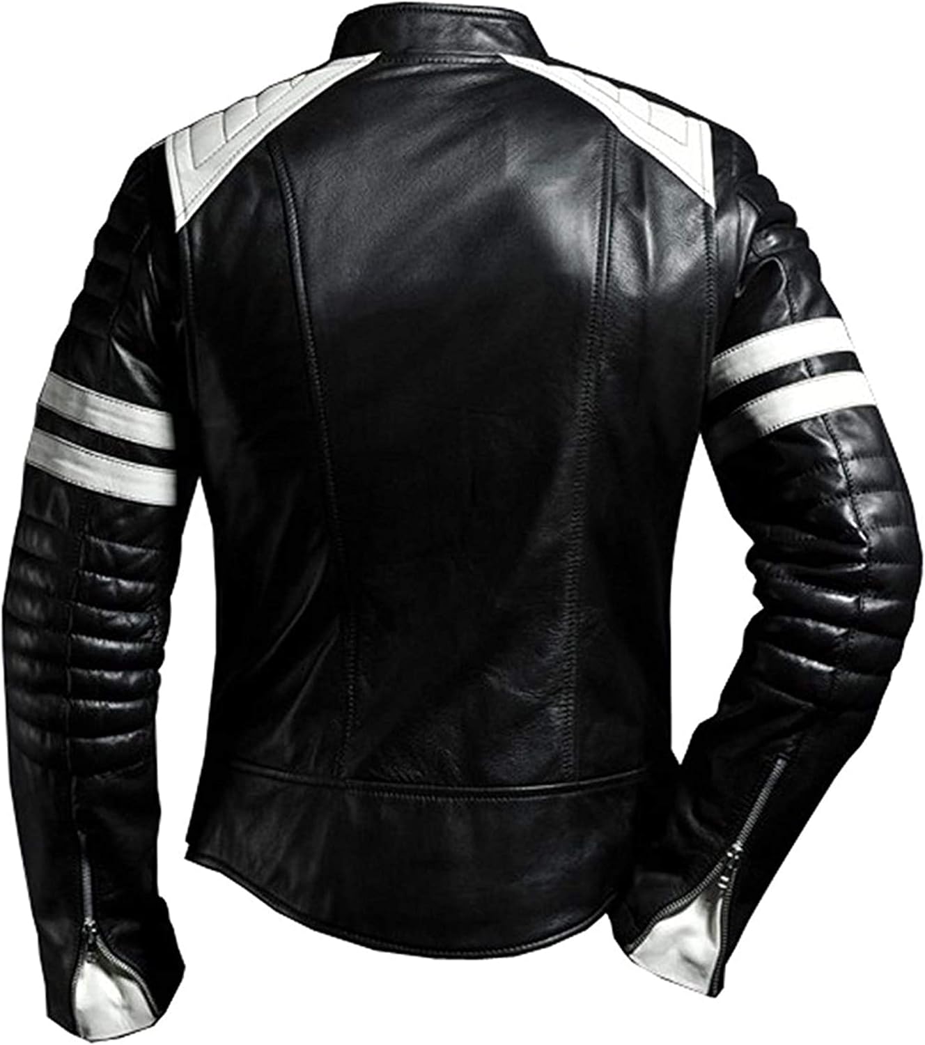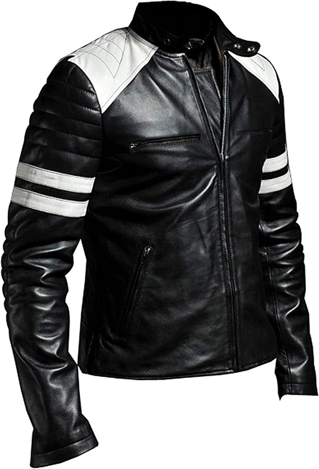 Men's Cafe Racer Distressed Leather Jacket. The black & brown cafe racer biker jacket is made from real leather with a distressed finish that provides durability and comfort. It also has soft viscose lining that is soft and comfortable. Men's distressed leather biker jacket features quilted design on shoulders and sleeves. It also has a round collar with snap button, front YKK zip closure, and long sleeves with zipper cuffs that provides a comfortable fit. The distressed style looks like a vintage biker in this leather jacket men. The Brown leather jacket for men has 4 pockets on front; 2 zipper pockets on the chest and 2 zipper pockets on the waist that provides you storage and convenience. The cafe racer brown leather jacket is available in various sizes, please check the size chart image before placing your order for more comfort and convenience.