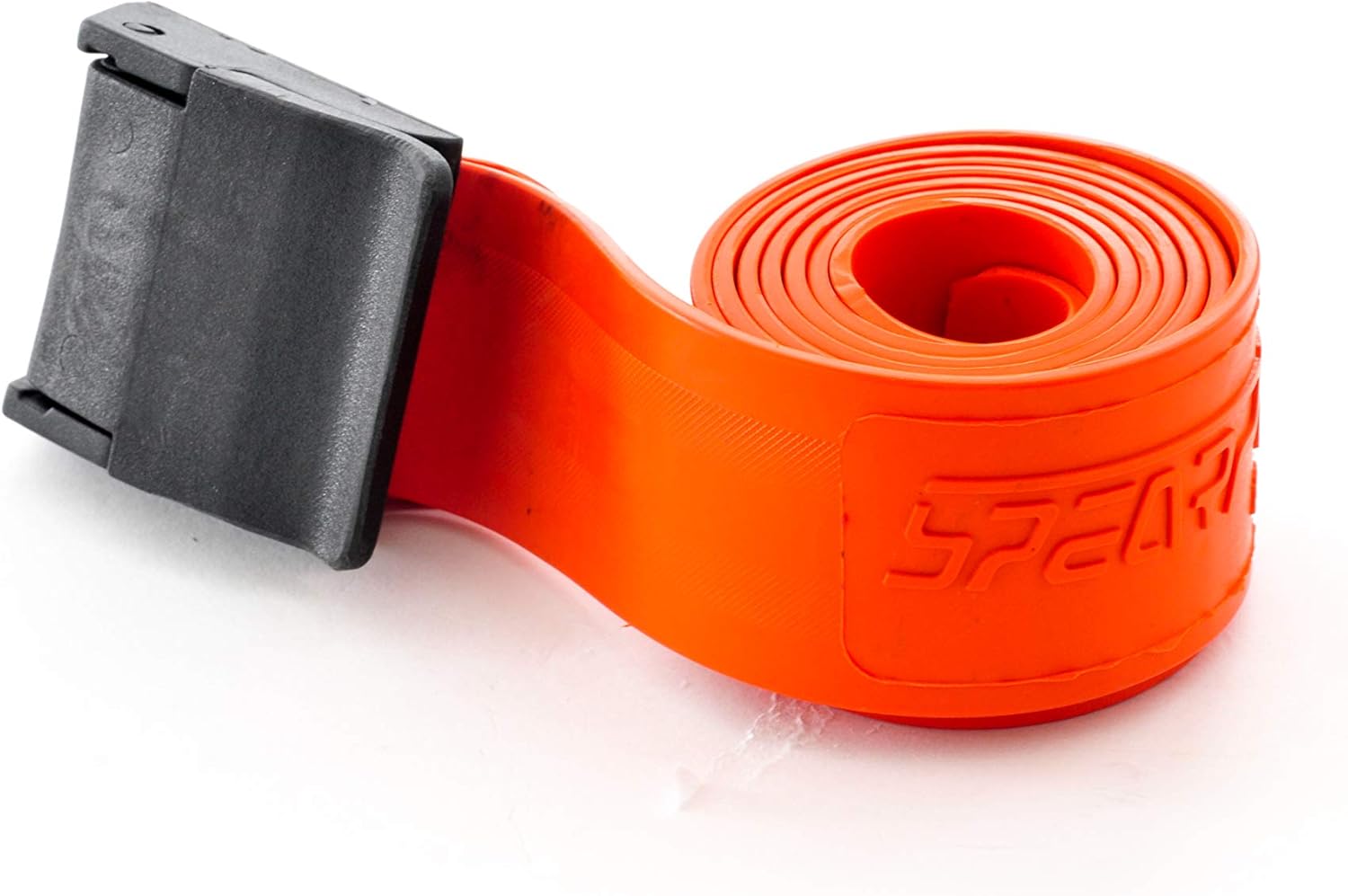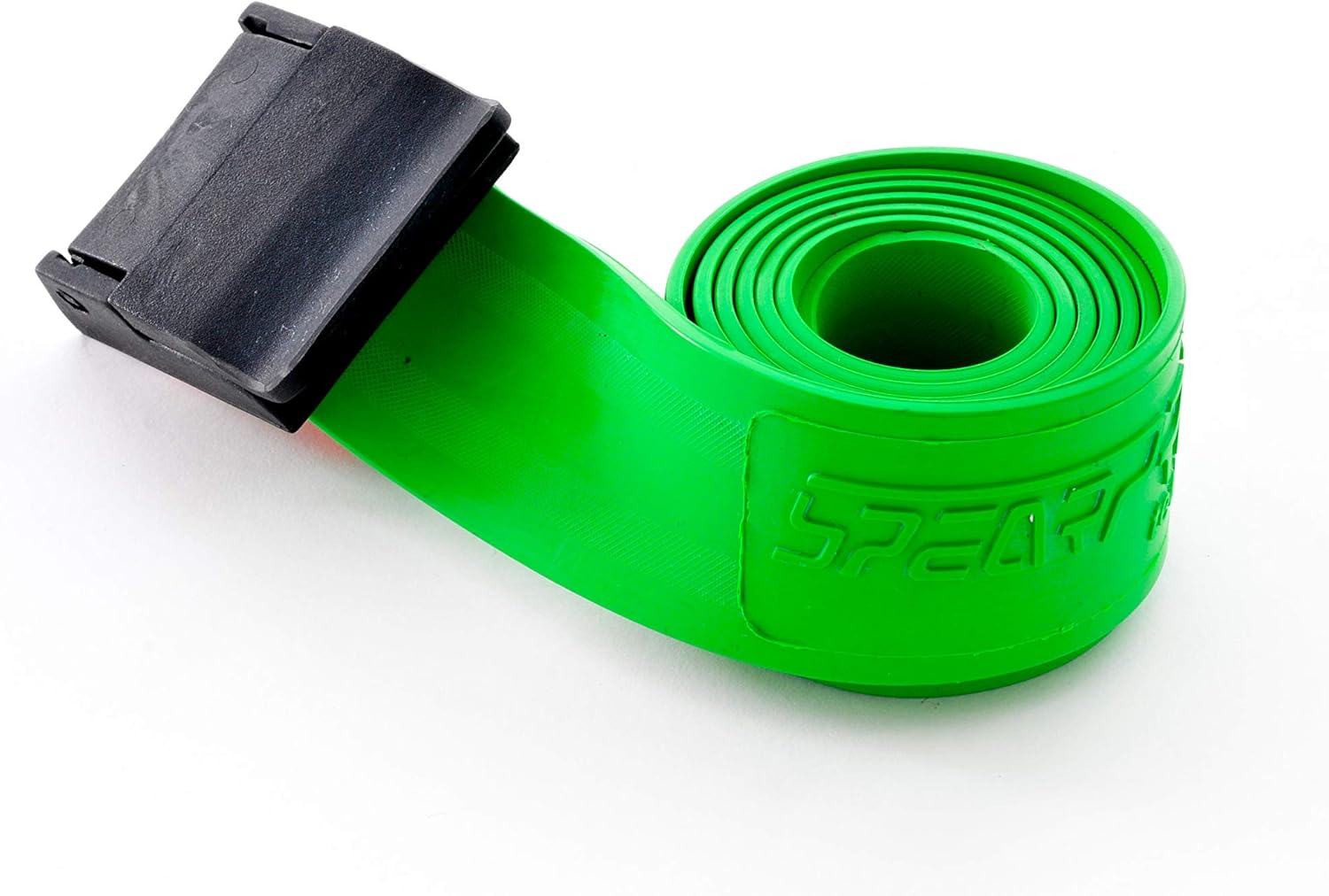 The Spear Pro weight belt is made out of a mixture of materials that allow for the perfect amount of stretch (not too little, not too much) and also for a long life. Most belts in the market are either made of materials that do not flex or are made of pure latex that stretches too much and goes bad within a year.This belt is 3mm thick and can be loaded with up to 15lb of weight.The belt comes in various color combinations.