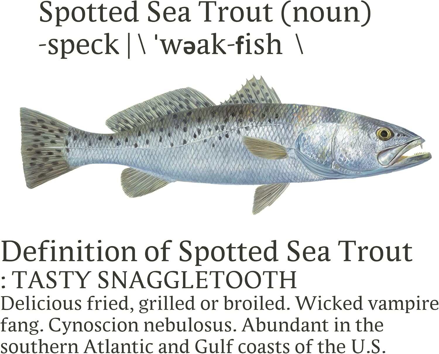 Amazing design featuring Award Winning artist, Randy McGovern's Speckled Trout illustration. Complete with a little humor and knowledge, this fishing shirt is guaranteed to bring a knowing smile to anyone familiar with fishing for Speckled Trout. Lightweight UPF/SPF +50 Solar Protection, Moisture Wicking ShirtDye Sublimated, shirt NEVER fades!Skiff Life Logo on Front Keeps you cool for those hot days on the water and warm in winter with Moisture Wicking Technology to keep you dry!Lightweight Solar Performance shirt comes in White, Ice Blue, Pearl Gray, Seagrass or Yellow. Offered in Sizes S-4XLOur lightweight Super Moisture Wicking performance fishing shirt comes in non-fade colors dry fit fabric. Custom Redfish Logo design is dye-sublimated so it won't fade. Our fishing shirt offers superior UPF +50 sun protection. This is a true PURE-tech moisture wicking technology fabric. Embroidered in the U.S.A. by Americans, it matters!