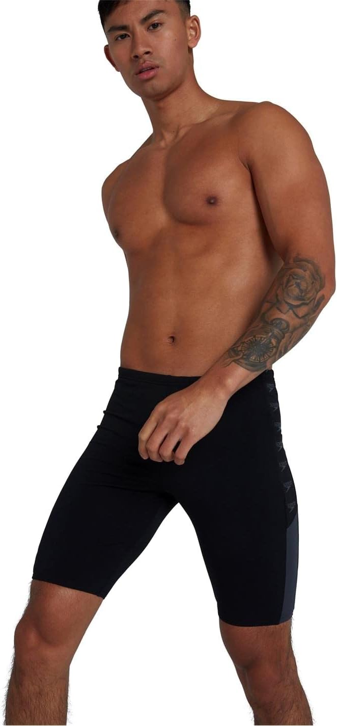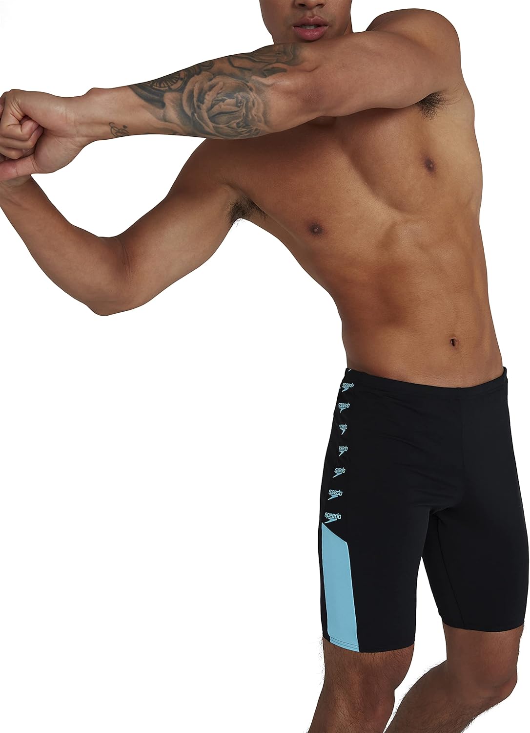 Give your swim even more flair with the iconic Speedo style. Get inspired in the pool wearing this stylish black jammer featuring a vertical repeating pattern of the iconic Boom Speedo logo. A drawstring waistband and full support provide comfort and safety while swimming, while the 100% chlorine resistant, quick-drying Endurance + fabric is ideal for everyday workouts.