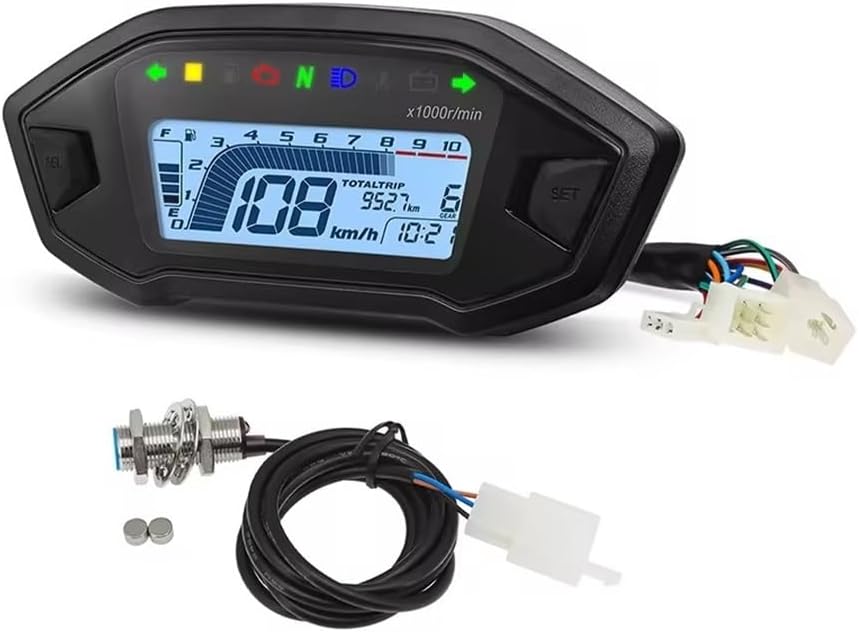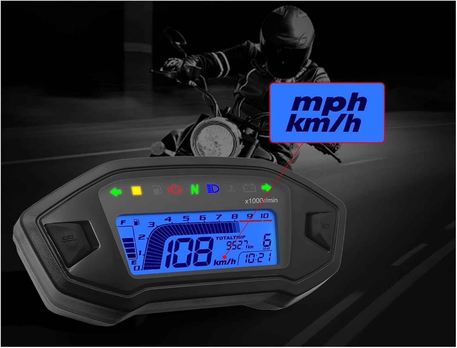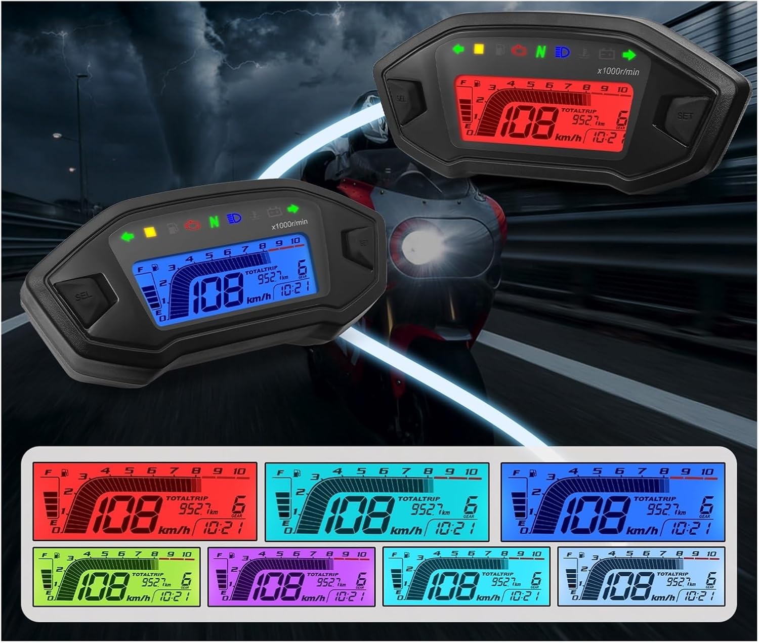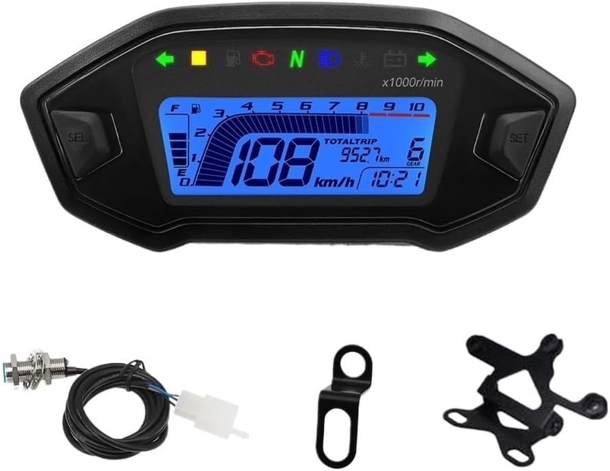 Hello dear friend:Welcome to our motorbike parts shop!We have a wide range of accessories, there is always one for you!Motorcycle Digital Speedometer Tachometer Instrument Dashboard Panel Motorcycle Display 10000RPM for 2-4 Cylinder 7 Colors-- Displaying time.-- Total travel distance.Special Features : Digital OdometerType : PlasticDue to time difference, we may not be able to reply your message on time, but you can order the item normally.