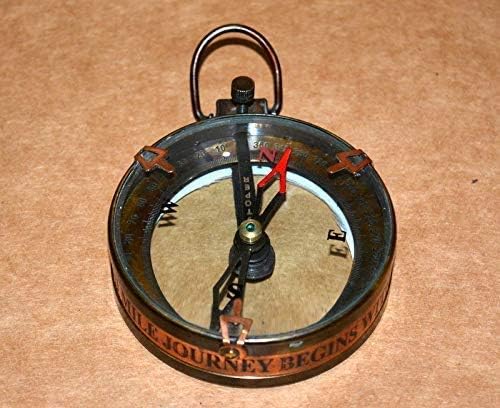 Antiqued brass sundial compass with handmade leather case.The End of your Search to give gift to everyone. Made of Solid Brass.Portable design, convenient to carry. Size: Compass 7 cm x 8 cm x 2 cm,Leather Case 10 cm x 9 cm x 3.5 cm.