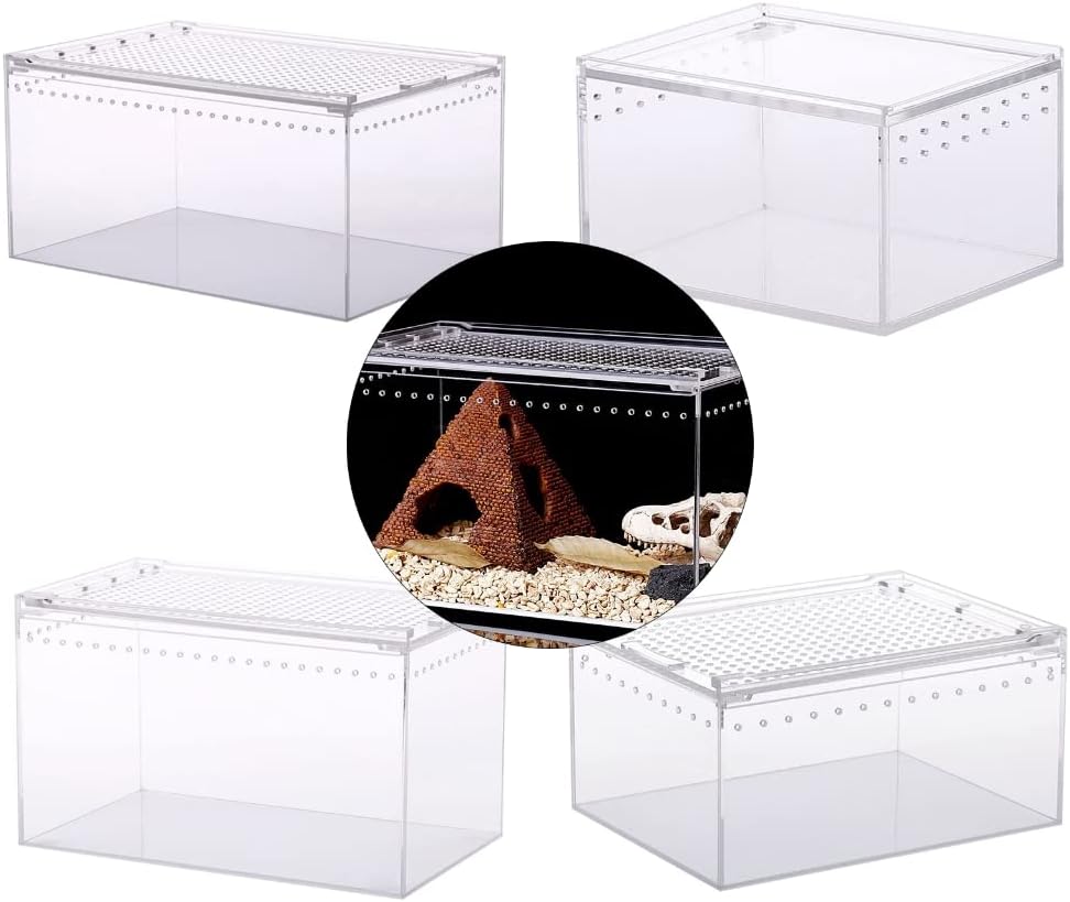 Spiders Tortoises Lizards Clear Designed Breeding Box Vivarium Lid Pet Product TerrariumFeatures:Clear Designed view for observing their daily-routine. Provide a large and comfortable space for to play or have a rest in tanks. acrylic structure with ventilate hole, you do not worry the pet can not breath. This pet feeding box has a strong and locking latches, so you do not have to worry about pet escaping. The base can hold water without leaking, so the item is also wonderful for breeding snake, centipedes, snail and else. Specifications:AcrylicSize: Approx.1: 30x20x15cm/ 11.81x7.87x5.91in2: 25x15x15cm/ 9.84x5.91x5.91in3: 20x15x10cm/ 7.87x5.91x3.93in4: 10.3x8.3x6cm/ 4.05x3.26x2.36inPackage Includes:1pc Acrylic Feeding BoxNote:1: Please allow 1-2cm errors due to manual measurement, make sure that you do not mind before you order. 2: Due to the differences between different monitors, the picture may not reflect the actual color of the item.