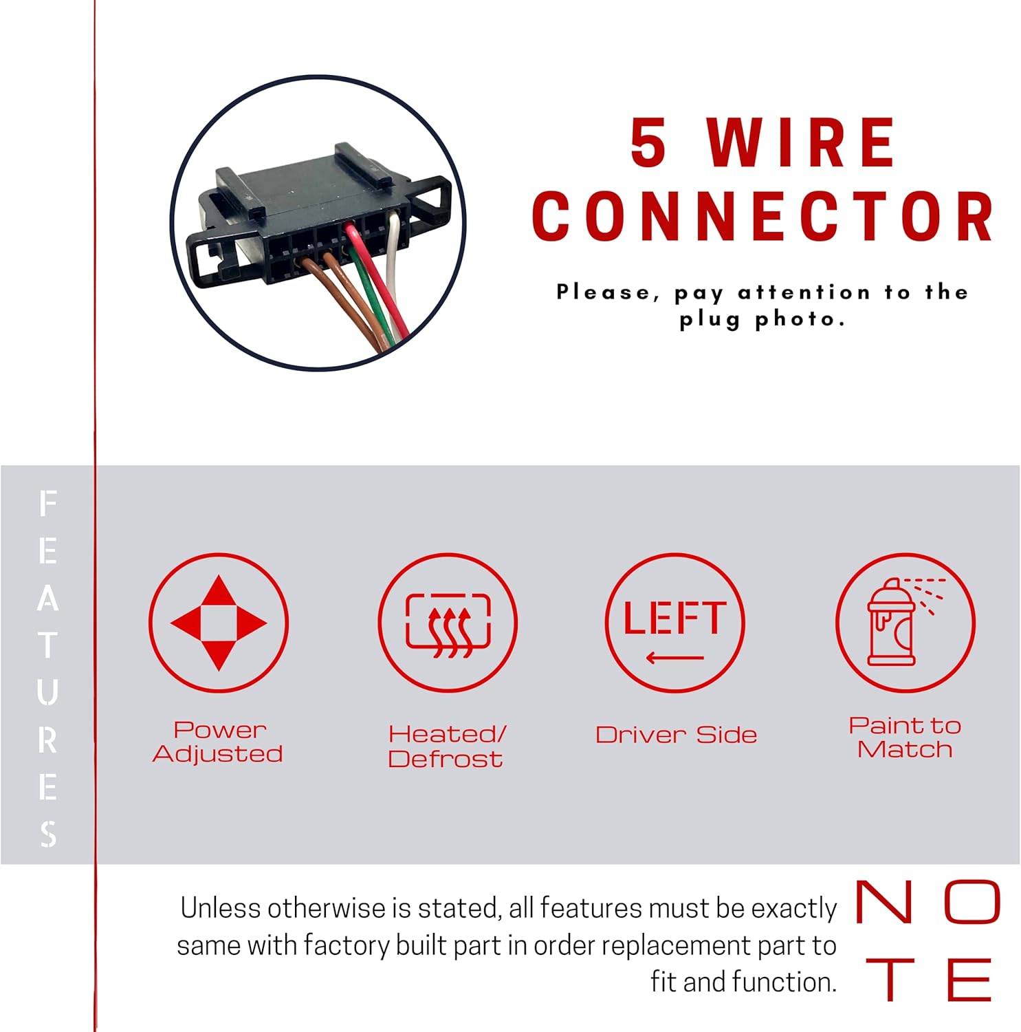 | Other Special Features of the Product | 5 pins / wires, Defrost, Manual Fold, Power Operated Glass, Primed / Ready to Paint Cover |