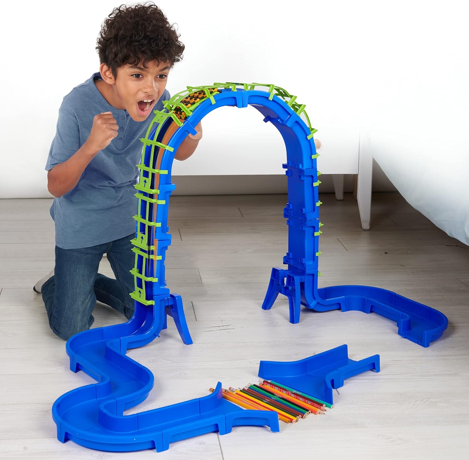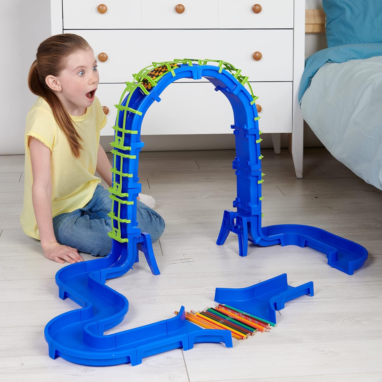 Power Treads is an all-terrain vehicle to build and release on original and challenging circuits! 1) Customize your vehicle with the colored parts 2) Build your circuit with the included parts and 3) Use your imagination and challenge yourself by adding everything you want to make your circuit unique and FULLY DEDICATED! Ahead for a race of madness! With the Gravity Challenge 50 Coin Pack you can build an extraordinary circuit with its impressive rise/fall! Have fun at night with the phosphorescent stickers to stick to your vehicle!