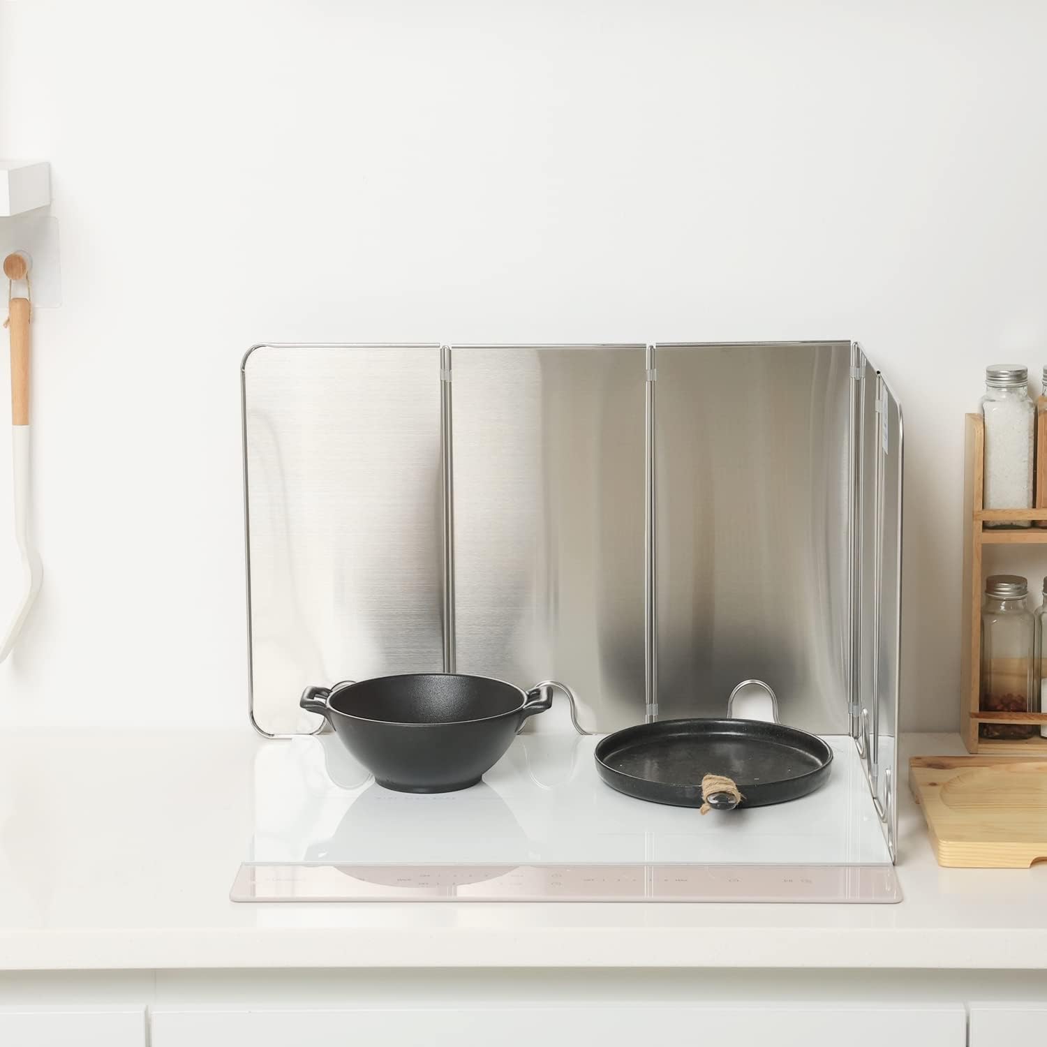 --Product Description-- ● Designed for easy installation around pots or frying pans. ● The product prevents food or oil from splashing around pots, frying pans, and range walls when cooking fried or stir-fried food, meat, grilled fish, sauce dishes etc. ● The surface is made out of stainless steel and be easily cleaned with a dishcloth or wet towel. It can be re-used after washing. ● The all stainless steel product provides excellent resistance against corrosion, fire, heat, and abrasions. The splatter guard is suitable for all kitchen ranges at home because they have small thermal expansion and don’t effect the human body. ● The outer appearance is finished with a clean line to match the stainless steel gas range. ● The edges of the product’s panels have been rounded for customer safety during use. ● It can neatly be folded and stored away in the sink drawer when not being used. ● Available for dishwashers. --Set Content-- (5P) ① Side panel - 2 ② Main panel - 3 ③ Connecting pin - 8 ④ Connecting pin’s fixing tube - 16 (Heat Resistant Silicone Material) --Buyers Guide-- (Please read before buying the product) ※ Sometimes lines may appear on the surface of the product, this is the shape of the original material and does not mean that the product is defective (the same material as the edge lining). ※ The product may slightly scratch on the surface due to its stainless steel material. ※ Some distortion can occur in the edges when being rounded. ※ The stainless steel material is 0.40mm thin and so each panel can naturally have slight waves. ※ Each panel does not have a preferred back or front side, both can be used either way. ※ Please be sure to check the product specifications before purchasing! ※It may not fit your stove. ※ Dishwasher can be used.