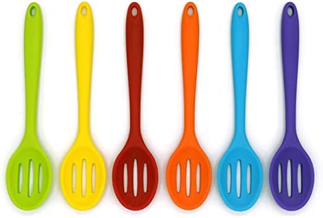 Name: Silicone kitchen spoon Material: food grade silicone Size: 27.5cm * 6cm Unit weight: 72g Color: red/green/blue/orange/purple/yellow Package Included: 1 x silicone slotted spoon (random color)