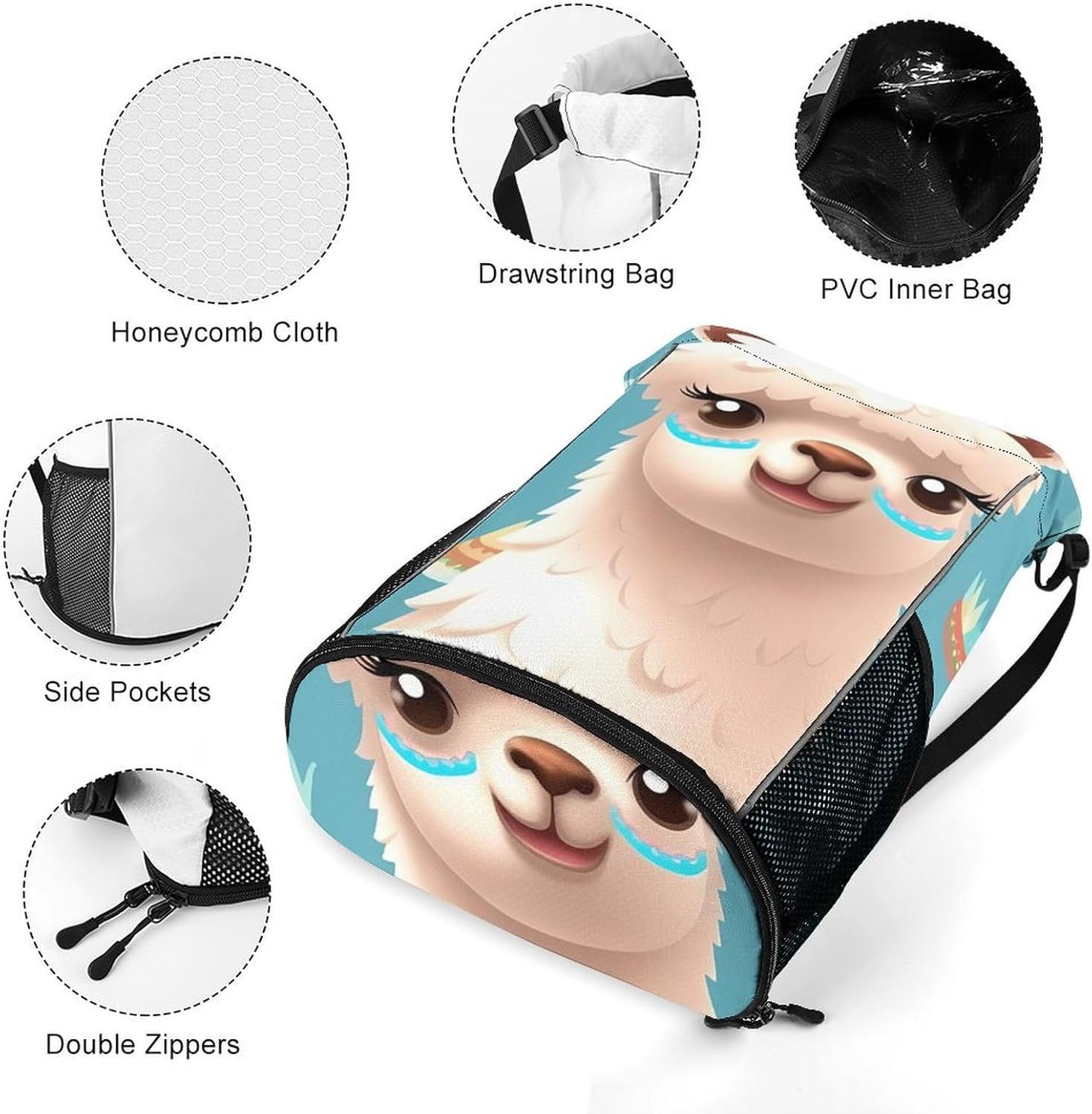 Our premium drawstring bag is the ideal companion for your active lifestyle. Made of premium honeycomb fabric, this pocket is not only durable but also has a comfortable textureA major feature of this Alpaca Patterm drawstring gym bag is the wet/dry separation design. Whether you are coming back from a sweaty workout or traveling in the rain, you can easily separate wet clothes or shoes from dry essentials such as electronics, documents or cosmetics. This innovative design keeps your items neatly organized and protectedWith a large zipper opening, it is very simple to access items. The zipper design conforms to the usage habits of most people and can be opened and closed smoothly and easily. You can easily and quickly get what you needThe sturdy structure of this sports bag is another feature. The edges of the shoulder straps are carefully processed, which makes it more resistant to heavy objects than ordinary bags. This ensures that it can accompany you in all sports and adventures without worrying about damageOur Sports Drawstring Backpack pocket also has a large capacity. It can hold a variety of items, from clothes and shoes to iPads, books, keys, ID cards, cosmetics and wallets. It is suitable for various occasions, such as traveling, going to work, fitness, etc. No matter where you go, this pocket can meet your storage needs