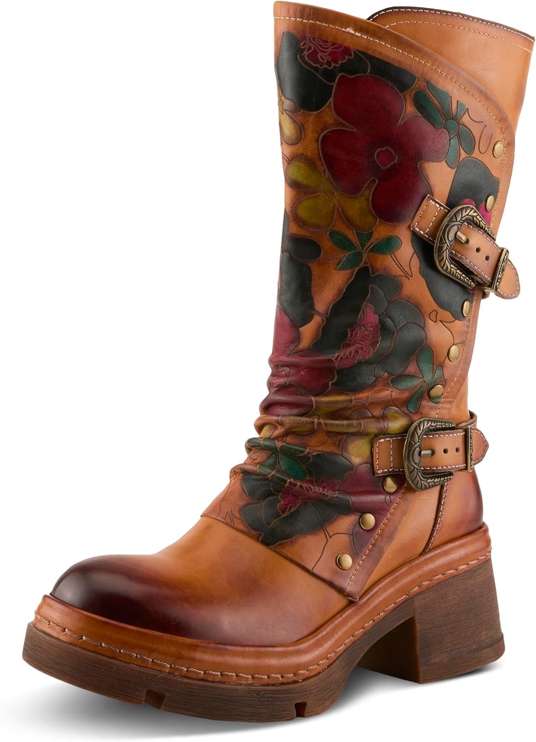 Step into effortless cool with the L'Artiste Coolvibes Boots, a showstopping blend of modern artistry and vintage edge. Crafted from hand-painted burnished leather, these mid-shaft boots feature intricate floral artwork, making each pair uniquely stylish. The dual adjustable buckle accents add a rugged charm, while the chunky lug outsole ensures durability and stability. A cushioned insole provides all-day comfort, and the inside zipper allows for easy on-and-off wear. Whether styled with jeans or a flowy dress, these boots exude confidence, cool vibes, and undeniable chicness.