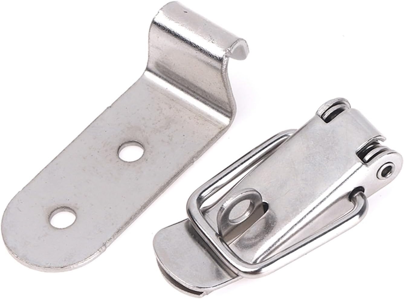 1.Stainless steel Made of material, durable and practical to use2.Good security: The robust spring set inside the toggle lock is easy to close and open. 3.You can use the tension locks, which can be used in areas where quick opening and closing is necessary to make your items more secure.4.Widely Used: The silver box lock can be used for leather, metal, wood boxes, suitcases, chests, tool boxes, drawers, chests, ideal hardware for home, office, business, etc.Material: Nickled Plated/201 Stainless steel/304 Stainless steelSize: 108mm , 127mm , 142mm , 158mmPacking list: 2* 90 degree buckle hook lock