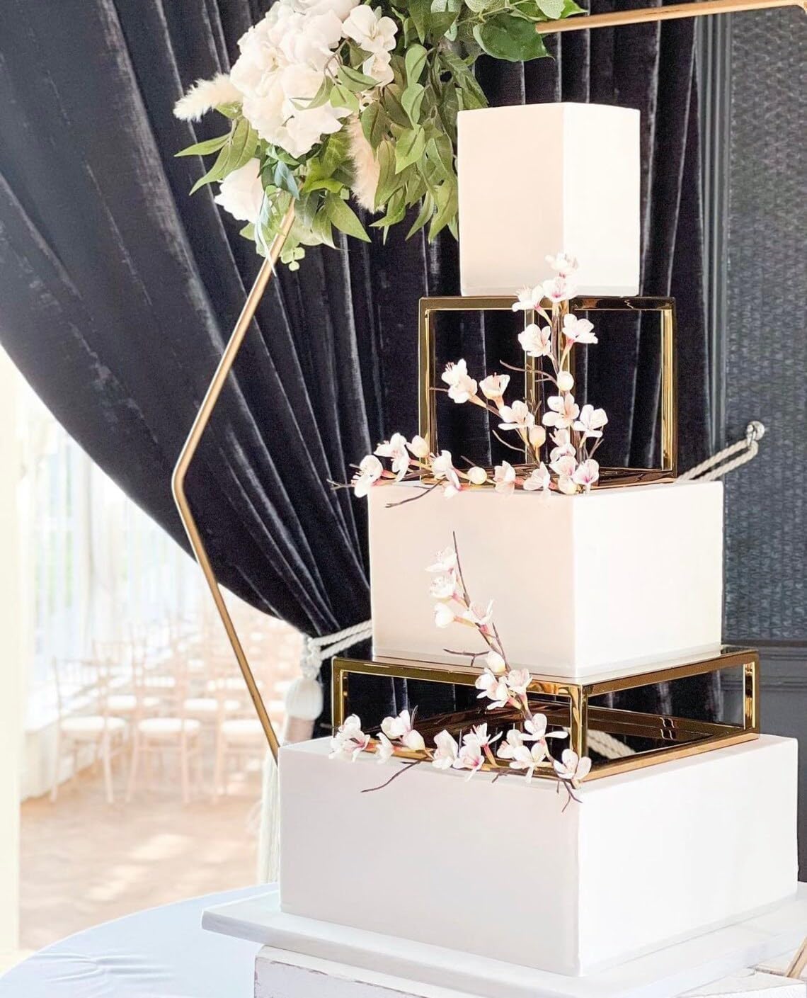 Material Construction: Material: Premium iron with painted gold finish Shape: Square design Assembly: No assembly required - integrated molding construction Finish: Painted gold coating with burr-free surface treatment Size Options Weight Specifications: Small: 5.9" x 5.9" x 5.9" | Weight: 1.05 lbs Medium: 9.84" x 9.84" x 3.93" | Weight: 2.12 lbs Large: 13.77" x 13.77" x 5.9" | Weight: 3.69 lbs KEY FEATURES BENEFITS PREMIUM IRON CONSTRUCTION High-quality iron ensures superior durability and load-bearing capacity Supports heavy multi-tier cakes without deformation or structural failure Maintains stability through repeated commercial and home use ELEGANT FLOATING SEPARATOR DESIGN Creates stunning visual "floating" effect for tiered cake displays Square shape maximizes surface area compared to round alternatives Professional bakery-quality presentation for any occasion INTEGRATED MOLDING TECHNOLOGY No assembly required - ready to use straight from package Eliminates stability issues from complicated assembly processes One-piece construction ensures long-lasting structural integrity SUPERIOR SURFACE TREATMENT Burr-free finish ensures safe handling during setup and cleaning Smooth, painted gold coating resists scratches and tarnishing Food-safe surface suitable for direct cake placement MULTI-LAYER SPACE OPTIMIZATION Rational space planning accommodates various cake sizes Perfect for cupcakes, elaborate wedding cakes, pastries, and desserts Flexible sizing options for different venue requirements VERSATILE APPLICATIONS Special Events: Weddings, birthday parties, anniversaries, baby showers, graduations, bar mitzvahsHolidays: Valentine's Day, Mother's Day, Father's Day, Christmas celebrationsCommercial Use: Bakeries, restaurants, catering services, afternoon tea partiesHome Entertainment: Dinner parties, family gatherings, holiday entertaining TECHNICAL DETAILS Base Type: Pedestal design for stability Special Features: Tiered display capability Color: Elegant gold finish