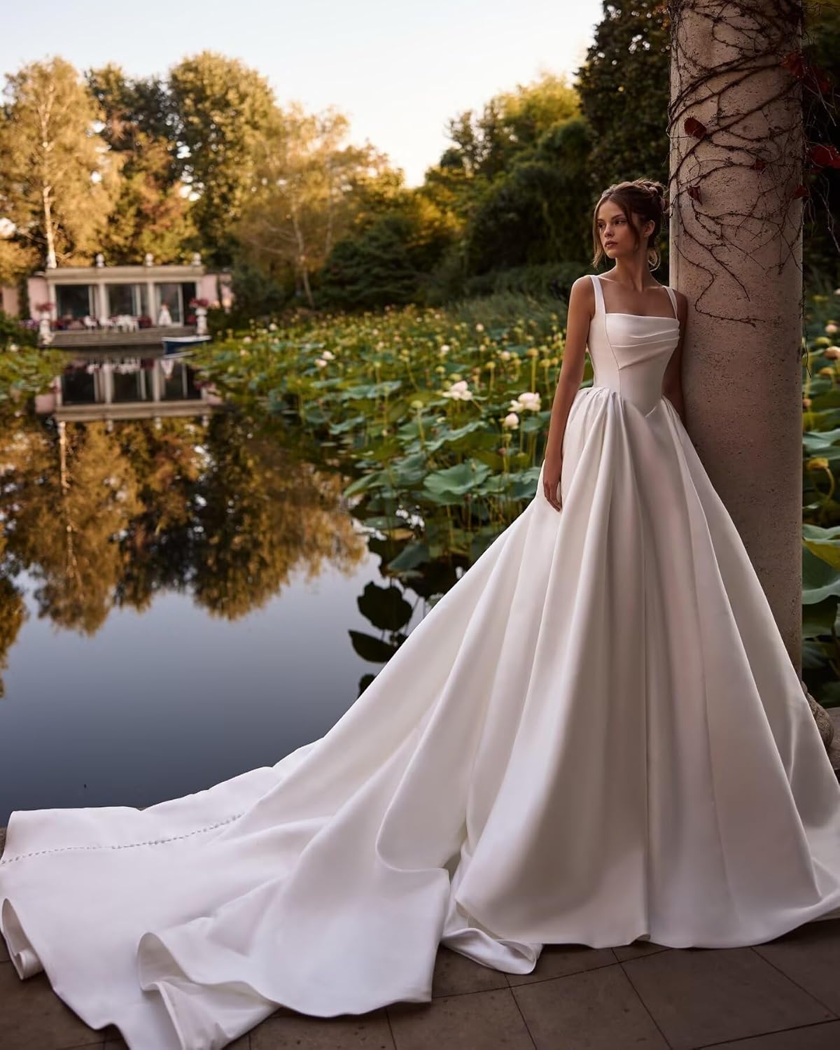 | Fabric Type | Satin Sleeveless A Line Drop Waist Wedding Dresses for Bride |