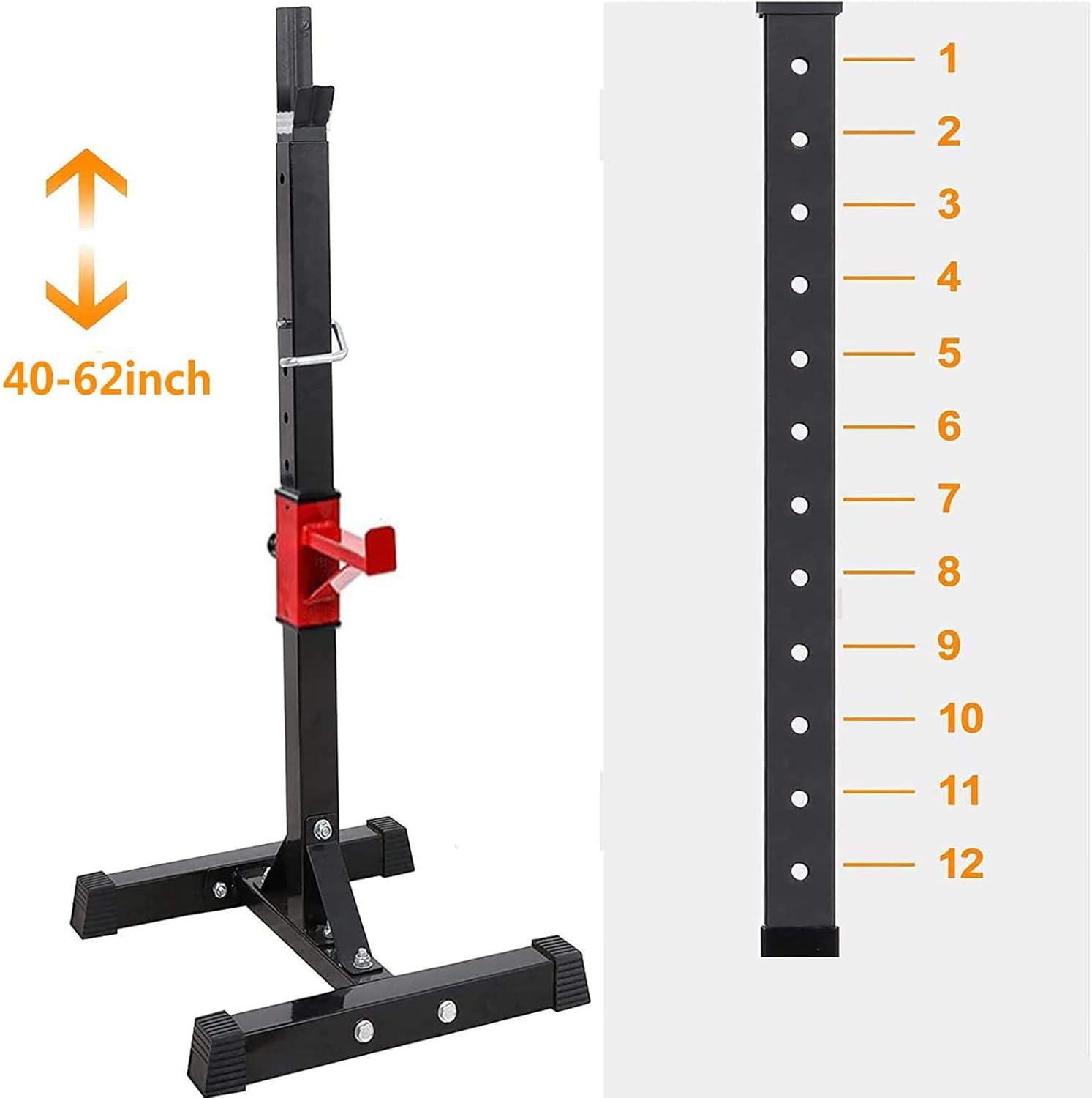 One-piece squat rack,adjustable weight bench with barbell rack,bench press rack,home fitness equipment rack for daily exercise ! Specifications: Name:Squat rack Material:High quality bold steel pipe Adjustable:high (35-59inch) Steel pipe specification:50x50×1.5mm Maximum load:660lb Net weight:14KG Function:barbell/squat/bench press Suitable for the crowd:fitness men and women Applicable location:gym/school/family,etc. Package Includes: 1 x Squat Shelf (Barbells and dumbbell stools not included in the package) Warning: 1.Before each use,check that the locking pin is fully inserted and that all nuts and bolts are tightened. 2.To prevent injury,be sure to warm up properly before training. 3.After eating,wait 1-2 hours before training. 4.Excessive or incorrect training can harm your health. 5.This device must be used on a flat surface. 6.Before exercising, jewelry,rings,chains,pins or other things that may get stuck. 7.We only sell shelves,not barbells,stools and other reference items. 8.If you have any questions during the purchase or assembly process,please feel free to contact us,I will always be at your service!