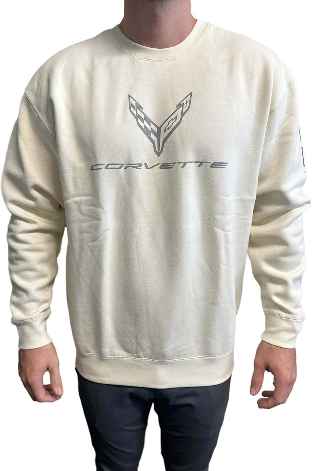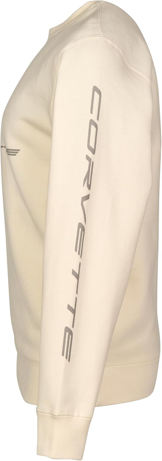 A cozy and stylish garment that captures the heart and soul of Chevrolet's groundbreaking sports car. 10oz. Crew Neck sweatshirt. Premium ring-spun cotton 3-end fleece to achieve a smooth and stable fabric surface for printing. This premium heavyweight garment has a generous fit with 1×1 ribbing at cuffs and waistband. C8 logo on chest and Corvette script down left sleeve.