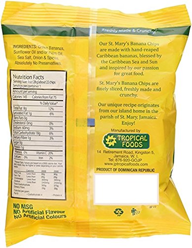 St. Mary's banana chips are made with freshly reaped Caribbean bananas, blessed by the Caribbean Sea and Sun and inspired by St. Mary's passion for great food. St. Mary's banana chips are finely sliced, freshly made and crunchy. This unique recipe originates from the parish of St. Mary, Jamaica. Enjoy!