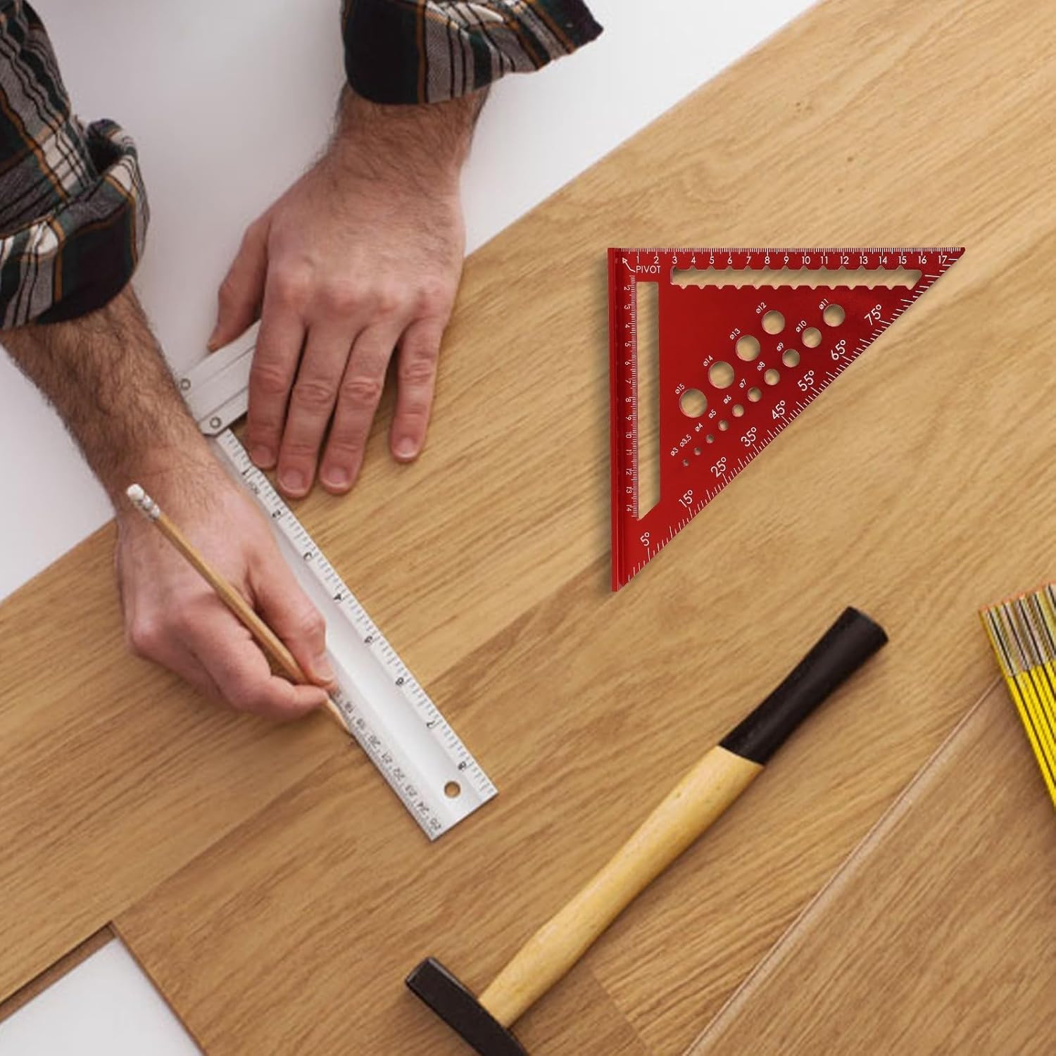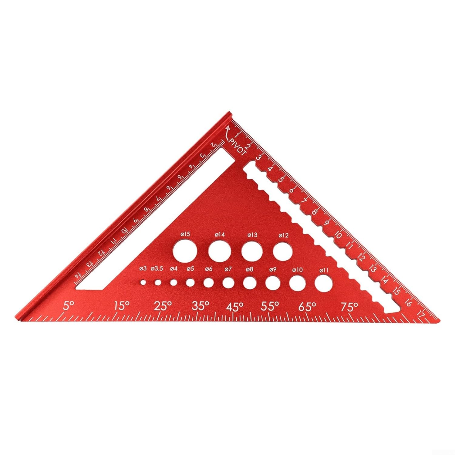 Product description Features:*For for Precision Measurement: This framing square allows for accurate drawing of 45° and 90° angles, making it an essential tool for carpenters and architects seeking precise measurements in their projects. *Stable Base Design: Featuring a widened base, this ruler provides double stability during use, that it stays securely in place while you cut, draw lines, or fix screws, enhancing the accuracy of your work. *Clear Scales: The ruler boasts clearly marked scales with precise spacing, that measurements are easy to read and interpret, allowing for long-term use without wear or fading. *Versatile Hole Sizes: Equipped with various diameter holes, this square is designed to accommodate different screw sizes, enabling quick and easy matching for drilling tasks, streamlining your workflow. *for Aluminum Construction: Made from treated aluminum, this framing square offers a strong structure that resists deformation, it maintains accuracy over time and is comfortable to hold during extended use.Specifications:Part Name:Triangles Square Metric Scale Framing SquareMaterial:AluminumSize:4.5 inches, 7 inches, 12 inches (optional) Color:Red Package Content:1*Triangles Square Metric Scale Framing Square Manufacturer Contact Information no
