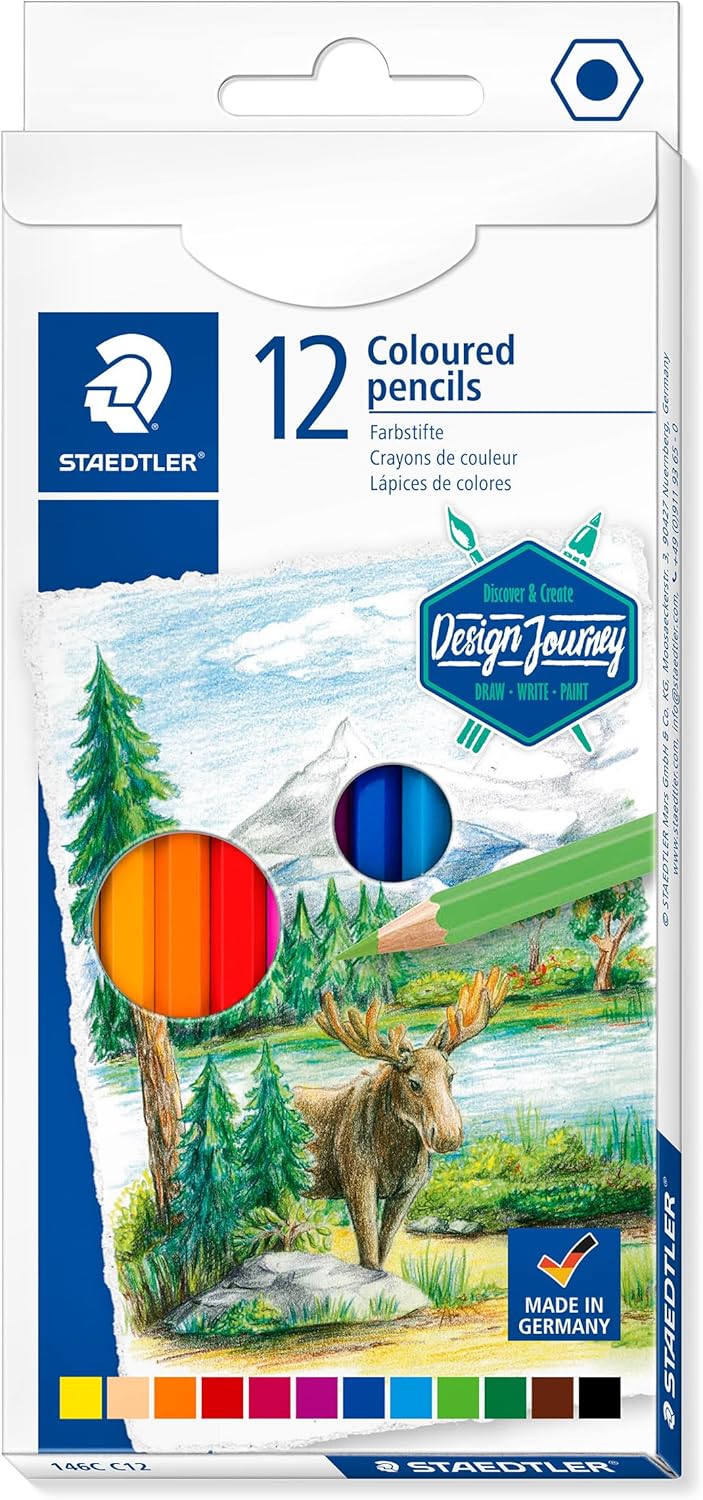 Classic hexagonal shaped colour pencil with tempered head. Lacquer in the colour of the lead for easy recognition and colour differentiation. Soft lead for a wide range of dry drawing techniques in bright colours. Reusable tin of 72 vibrant colours. Part of the Design Journey range for hobby artists.