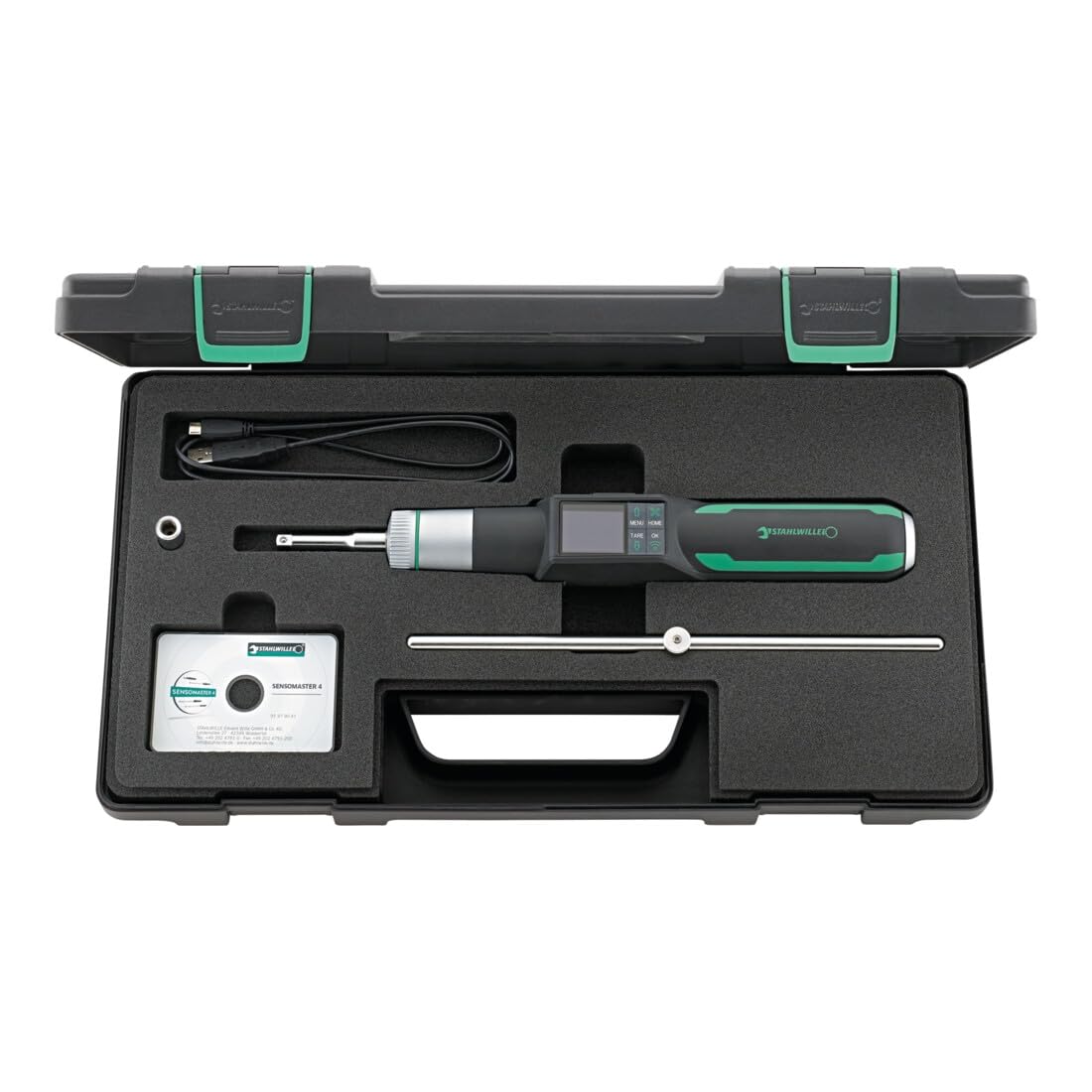 Upgrade your work efficiency with the Stahlwille TORSIOTRONIC Digital Torque Screwdriver. This advanced tool is perfect for heavy-duty production use and combines the accuracy of electronic measurement with the convenience of a mechanical "click" trigger mechanism. The integrated ratchet with 80 teeth provides a small ratchet angle of only 4.5°, enabling precise and sensitive working, especially for hard-to-reach fasteners. With the sliding mechanism, the TORSIOTRONIC screwdriver prevents accidental exceeding of the set tightening torque, ensuring optimal screw tightening without overtightening. The bright and battery-saving color OLED display clearly shows all relevant information and can be easily read from various angles. The patented design includes features like a battery-saving display, visual assessment of the torqueing action, and the ability to store up to 2500 fasteners and sequences for later reading and documenting on a PC using the integrated micro-USB interface. The target torque and tolerances can be individually set for accurate evaluation of readings. This best-performing digital torque screwdriver offers three operating modes (first peak, track, peak hold) with tactile, visual, and acoustic trigger signals for enhanced usability. The ergonomic convex handle ensures strain-free working and is resistant to oils, grease, fuels, brake fluids, and Skydrol. It can be used in both clockwise and anticlockwise directions and has a deviation value of ±4%. Manufactured in Germany, the Stahlwille TORSIOTRONIC Digital Torque Screwdriver adheres to the most stringent quality control standards and complies with DIN EN ISO 6789-2:2017 specifications, ensuring reliable performance and precision. Stahlwille is a trusted name in problem-solving tools, offering a wide range of high-quality products designed to excel even in the toughest tasks. Our special-purpose and demolition tools provide technicians with the confidence to complete jobs without compromising quality. As a leading pace-setter in the hand tools industry, Stahlwille is committed to delivering tools that surpass standard solutions and provide a lifetime of trouble-free service with uncompromising quality.