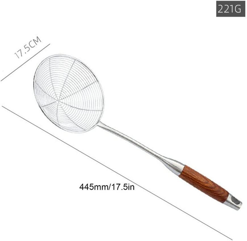 1. made of food-grade stainless steel and the thickness of mesh is increased .2. Dishwasher safe and convenient acceptance, spend less time cleaning, Lightweight .3. it is made of stainless steel which is heat resistant and sturdy, will not deform even after long-term use.4. the handle protects you from oil splashes and burns when cooking at high temperatures.5. with light weight and portable size, it is easy and convenient to carry and use.Specifications:Material: wood + stainless steelSize: as shownSuitable:for kitchenNote:Due to the different monitor and light effect, the actual color of the item might be slightly different from the color showed on the pictures. Thank you!Please allow 1-2mm measuring deviation due to manual measurement.Quantity : 1 pcs