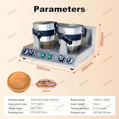Tired of slow cooking and unevenly sealed burgers? Looking to impress your guests with creative, eye-catching UFO burgers that are both delicious and fun? Our Ice Cream UFO Burger Maker is designed to deliver perfect results every time, ensuring a crispy exterior and a fully sealed interior that keeps your fillings intact. **Key Features:** - **Generous Mold Size:** The 10.5cm diameter mold accommodates ample delicious fillings, allowing you to create gourmet burgers with ease. - **Non-Stick Baking Tray:** Enjoy beautiful, intact results and quick cleanup after use, making your cooking experience hassle-free. - **Adjustable Temperature Control:** With a wide range from 50-300°C (122-572°F), you can experiment with various cooking styles and achieve the perfect burger every time. - **Efficient Heating:** The fast, double-sided heating design ensures even cooking and high output, making it ideal for both home cooking and commercial use. **Product Specifications:** - Power: 1300w (Single Head) / 2600w (Dual Head) - Voltage: 110v/220v - Temperature Range: 50°C – 300°C - Timer Range: 0 – 5 Minutes - Mold Material: Cast Aluminum with Non-Stick Coating - Body Material: Stainless Steel - Mold Size: 10cm (Diameter) x 2.5cm (Depth) - Machine Size: 44.5×25×26 cm (Single), 50×39×30 cm (Double) - Machine Weight: 11 kg (Single), 19 kg (Double) **What's In The Box:** - 1 x Burger Waffle Maker - 1 x User Manual **Important Notes:** - Safety First: Keep out of reach of children. Food is not included. - Read Manual: Always read the instruction manual carefully before use. - No Metal Tools: Avoid using metal utensils on the non-stick coating. - Avoid Overheating: Do not operate at high temperatures for extended periods. - Note on Appearance: Slight color or size variations may occur; please confirm your acceptance before ordering. **Customer Service:** We are here to assist you! If you encounter any issues, please feel free to contact us, and we will respond within 24 hours....