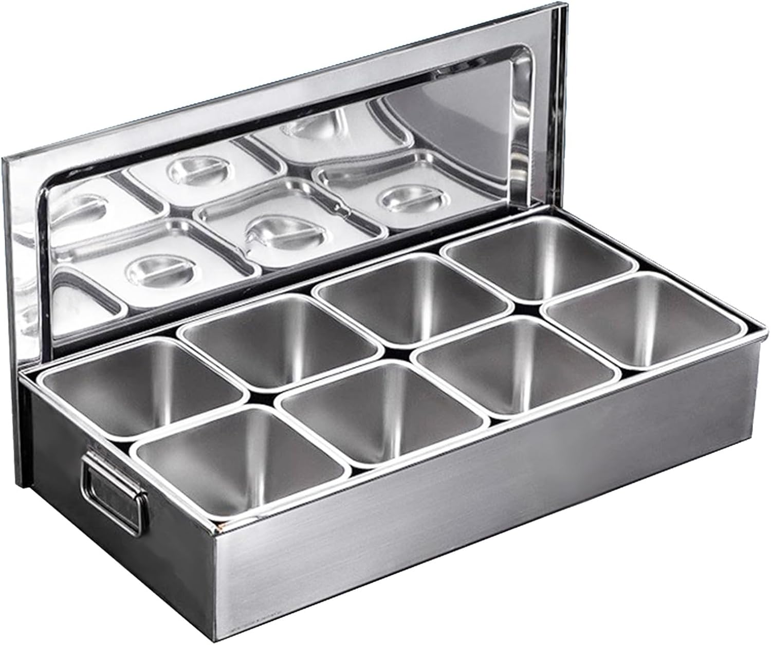 Elevate your culinary experience with our versatile Spice Rack Shelf, designed to streamline your kitchen organization. This commercial-grade condiment rack is engineered with a robust load-bearing capacity, ensuring durability and stability without the risk of deformation. Say goodbye to the chaos of mixed seasonings; our thoughtfully designed seasoning box features individual compartments that prevent odor mixing, keeping your spices fresh and flavorful. Ideal for a range of settings, from bustling restaurants to home kitchens, this seasoning container provides a convenient and organized storage solution for all your essential cooking ingredients. Whether you're preparing sauces, spices, or toppings for a barbecue, our spice rack is a must-have tool for chefs and home cooks alike. Crafted from high-quality stainless steel, our spice rack not only offers a sleek silver finish that complements any decor but also guarantees longevity and easy maintenance. Available in various sizes—50x34.4x11.9cm, 66.3x34.4x11.9cm, 50x50x11.9cm, and 67x50x12cm—this condiment container dispenser is versatile enough to fit any kitchen or buffet station. Perfect for use in kitchens, buffet restaurants, hot pot establishments, barbecue joints, food pantries, cafes, beverage shops, and food trucks, our spice rack is designed to enhance your cooking efficiency. Each compartment can hold up to 2000ML, providing ample space for jam, sauces, dried fruits, salad dressings, and various spices. Transform your cooking space into an organized haven with our Spice Rack Shelf, where functionality meets style. Enjoy the convenience of easy access to your favorite seasonings, ensuring that you can create delicious meals with ease.