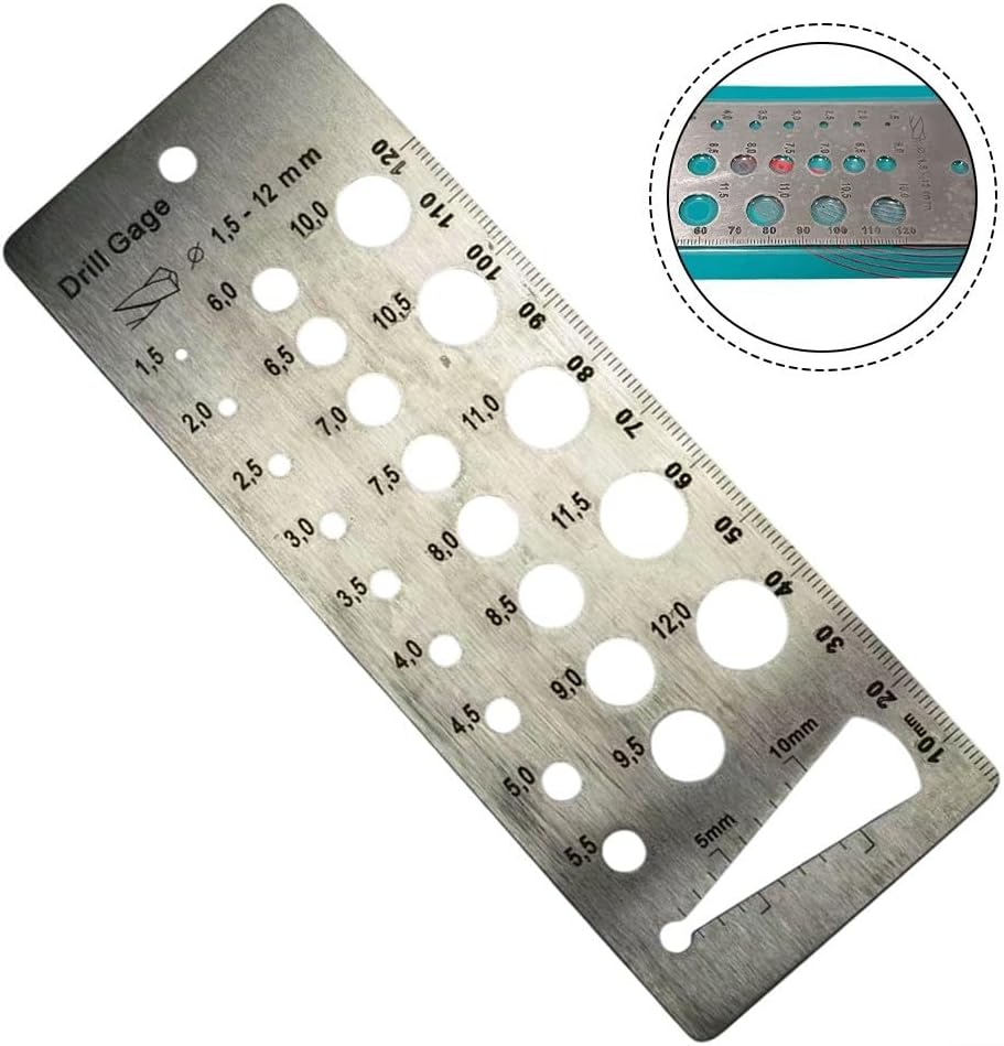 Product description Features:Carefully constructed of stainless steel for durability.Clearly marked fractions and decimals for accurate measurements.Equivalent sizes range from 1.5-12mm.Helps measure drill bits quickly and easily.Drill gauges quickly and easily identify drill bit sizes.Heavy duty stainless steel -Hole sizes are equivalent to markings and will not wear offFive other drill gauges: Metric size drill bitsSpecifications:Part name: Drill gaugeSize: As picturedMaterial: Stainless steelColor: SilverPackage contents:1*Drill gauge Manufacturer Contact Information no