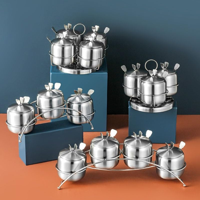 This functional seasoning set includes an array of canisters for neatly organizing your . With lids for protection and easy access.Product Name: Seasoning boxMaterial: Stainless steel Size: 27*14.5CM , 36.5*14.5CMColour: SilverApplication site: Family,kitchenDepartment: Men,WomenApplicable: AdultApplicable scenarios: Home, Restaurant, KitchenPackage contains:Package list: Seasoning box* 1 (excluding other exhibits)Attention:1. Due to manual measurement, please allow 1-2cm error. Please understand, Thank you2. The actual color of the product may be slightly different from the color shown in the picture. please refer to the actual product