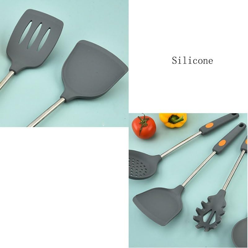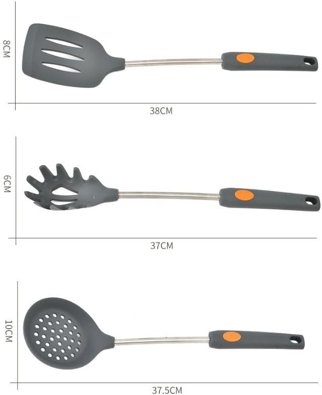 Product Name: Spoon and spatula setMaterial: Silicone + nylon + stainless steelSize: As shownColor: As shownFunctions: Cooking, bakingThe set includes: Spatula, spatula, soup spoon, etcCrossbody bag:Shovel and spoon set *1 set(Excluding display items)Attention:1. Due to manual measurement, please allow 1-2cm error. Please understand,Thank you2. The actual color of the product may be slightly different from the color shown in the picture. please refer to the actual product