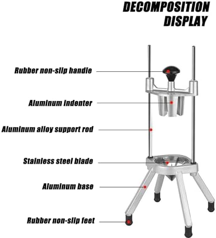Introducing our versatile vegetable and fruit chopper, expertly crafted from durable aluminum alloy and robust 304 stainless steel. Its spacious square cutting area makes slicing fruits and vegetables both easy and efficient, streamlining your meal prep process. Designed for longevity, this chopper is not only easy to clean but also built to remain in excellent condition for all your culinary needs. Its lightweight construction ensures that even children and the elderly can safely use it, turning everyday cutting tasks into a fun and enjoyable activity. The innovative blade design enhances efficiency, allowing you to quickly chop large quantities of fruits and vegetables in just seconds. This feature saves valuable time during meal preparation, making it an essential tool for busy families and professional kitchens alike. Versatile enough to handle a variety of ingredients, including cucumbers, onions, tomatoes, mushrooms, green peppers, and celery, this chopper is perfect for creating fresh salads or a range of family-friendly dishes. Whether for home cooking or commercial use, it delivers consistent results every time. Specifications: - Body Material: Aluminum Alloy - Blade Material: 304 Stainless Steel - Number of Cutting Pieces: Available in 4, 6, or 8 pieces - Output: 3 seconds per piece - Size: 20.3 x 20.3 x 48.3 CM - Weight: 2.3 KG - Packing Size: 22 x 22 x 51 CM - Gross Weight: 3 KG Package Includes: 1 x Commercial Fruit Cutting Machine Elevate your cooking experience and simplify meal prep with our reliable vegetable and fruit chopper!
