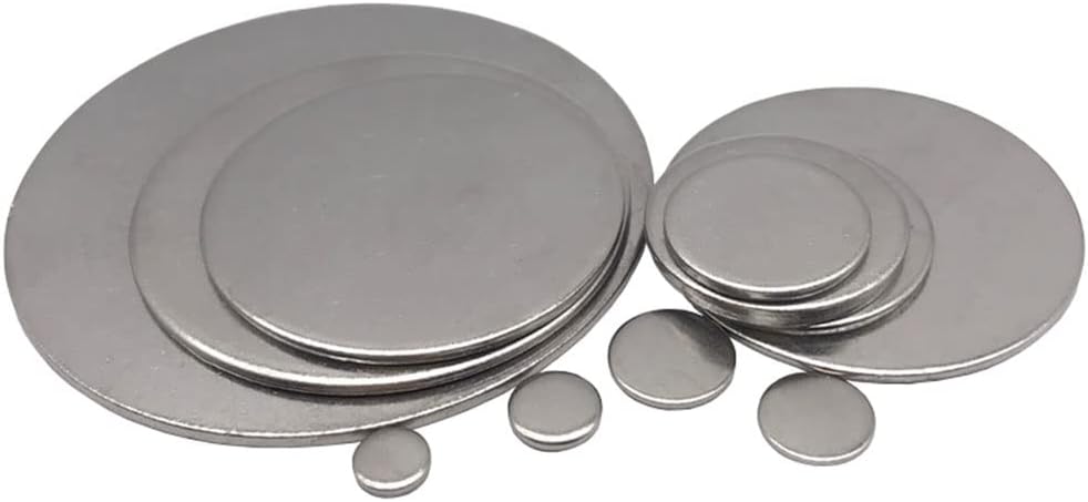Description:Material: 304 Stainless Steel.Diameter: 15mm, 16mm, 17mm, 18mm, 19mm, 20mm304 stainless steel disc thickness: 1.1mm, 1.3mm, 1.8mm, 2.7mm.If you need other sizes, please contact us for more information.High Strength, High Hardness, Corrosion ResistancePackage includes: 10Pcs/15pcs/20pcs/25pcs Round Plate.
