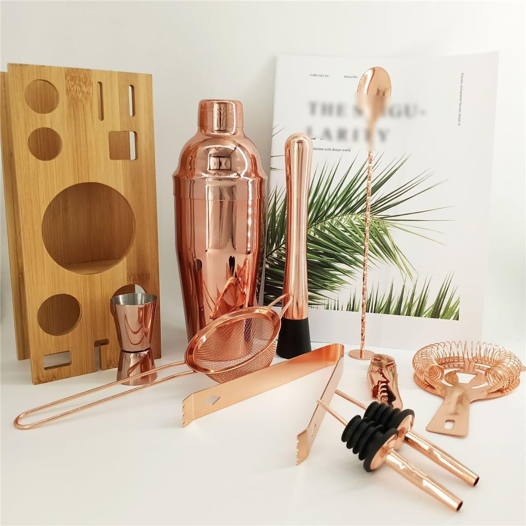 Strong and .Easy to store.Entertaining your guests at home or at a party is a great option.This is a great gift for cocktail lovers at weddings, birthdays, Thanksgiving, Christmas, or business events.This bartending tool can be recommended to beginners, experienced bartenders, your family, your friends, etc.Specifications: Material: Stainless steelOccasion: Gift bar, bar, family party, etcPackage Included:1pc 750ml English shaker1pc stainless steel measuring cup1pc ice filter1pc ice clamp2pcs wine dispenser1pc Seahorse 1pc bar stirring stick1pc slotted spoon1pc crushed Popsicle1pc wooden frameNotes: 1. Only sell main products, not other products.2. Due to screen differences, the color may be slightly different from your expected color, please allow.Remind:After receiving the packaging, please check the packaging and the product carefully. If the received item is defective or has any questions, please us via email to resolve the problem. We will reply as soon as possible and do our best to meet your needs.Ideal Gift for Cocktail Lovers: With the elegant packaging, this bar set is an Ideal gift for cocktail lovers for wedding, birthday, housewarming, Thanksgiving, Christmas, Valentine or business. This bartending kit is recommended for beginner, experienced bartender, your lover, your family, your friends.