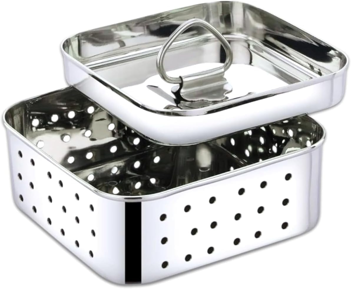 Transform your kitchen into a professional cheese-making station with this versatile stainless steel paneer maker and press. This premium 1000ml capacity mold features a square design measuring 12.5 x 12.5 x 5.0 cm, perfect for crafting uniform blocks of paneer, tofu, and other fresh cheeses. The thoughtfully designed perforated structure allows optimal whey drainage while maintaining the ideal shape of your homemade creations. The durable stainless steel construction ensures longevity and easy cleaning, while the included lid with handle provides convenient storage and pressing functionality. This all-in-one set eliminates the need for additional tools - use it as a strainer during the curdling process, then seamlessly transition to molding and pressing your cheese. The sturdy press plate effectively removes excess moisture for perfectly firm results every time. Whether you're a seasoned cheese maker or just starting your culinary journey, this practical kitchen tool delivers consistent, professional-quality results.