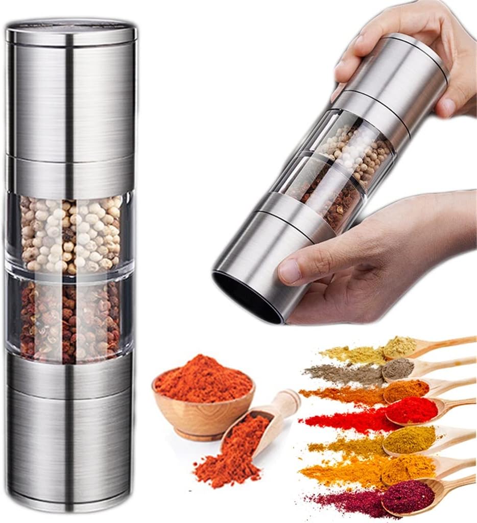 Acrylic bottle body, clearly distinguish the spicesGrind two kinds of spices, bottle is enoughComfortable grip, easy to grindThe thickness can be adjusted to meet personal taste preferencesIt can grind a variety of spices, and it is more fragrant when groundSpecification:Material: 304 stainless steel + acrylic + ceramic grinding coreProduct size: 5*5*18.8cmSingle cell capacity: 48mlPackage Included:1* spice grinder If you have any questions about the product, please me, we will you within 24 hours and give you a satisfactory answer.Can grind various seasonings