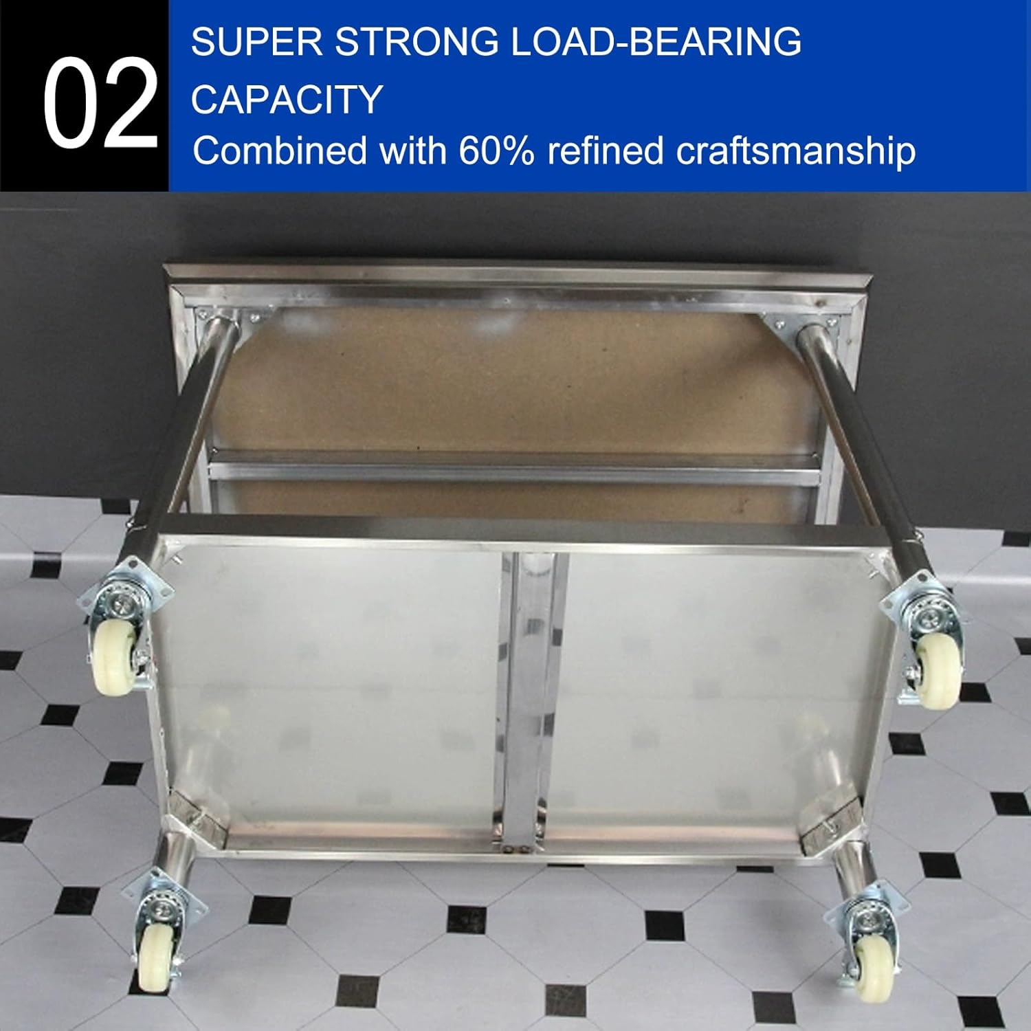 ——Restaurant equipment stainless steel workbench——The ultimate solution to meet your professional kitchen needs! It can enhance your cooking experience==Features- The whole adopts 201 non-magnetic stainless steel brushed panel, the thickened plate surface is neat and delicate, easy to wipe and clean- Fusion of refined craftsmanship, enhanced thickening design, fiber density board under the table for good stability and longer life, can withstand 250kg gravity- Silent universal wheel with brake, one-shot molding, wear-resistant and durable, smooth push and pull, easy to move【Product parameters】Name: Stainless steel workbench with wheels/stainless steel dining table/commercial kitchen dining table/heavy-duty kitchen preparation tableMaterial: Stainless steelNumber of layers: double-layerAdditional functions: with wheelsColor: stainless steel original colorSize: Various sizes are available, please refer to the size diagram for detailsScope of use: cutting vegetables, workshop, packaging, dough, various occasionsPackage includes: stainless steel workbench and various installation accessories【Note】Since this product is made of stainless steel, please wear gloves when installing