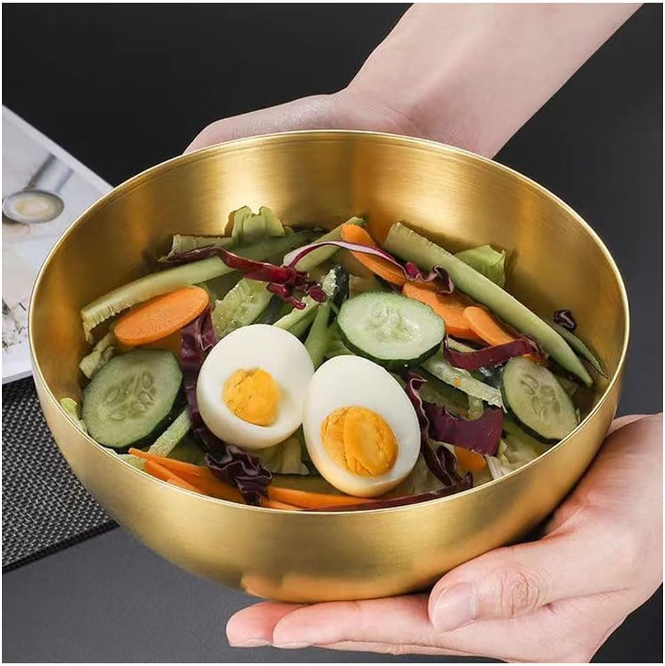 Product Name: Stainless steel mixing bowlStyle: Modern and minimalistMaterial: Atainless steelColor:Silver, GoldShape: CircularSIZE: As shownApplicable audience: AdultsApplicable scenarios: family, hotel, food, others.Prompt:1.only sell Stainless steel mixing bowl, not including other exhibits.2.Different measurement methods, Approximately 1-2cm error. Please refer to the actual product.3.Ue to factors such as light, monitor and placement angle, the product may produce chromatic aberration, which is subject to the actual product.